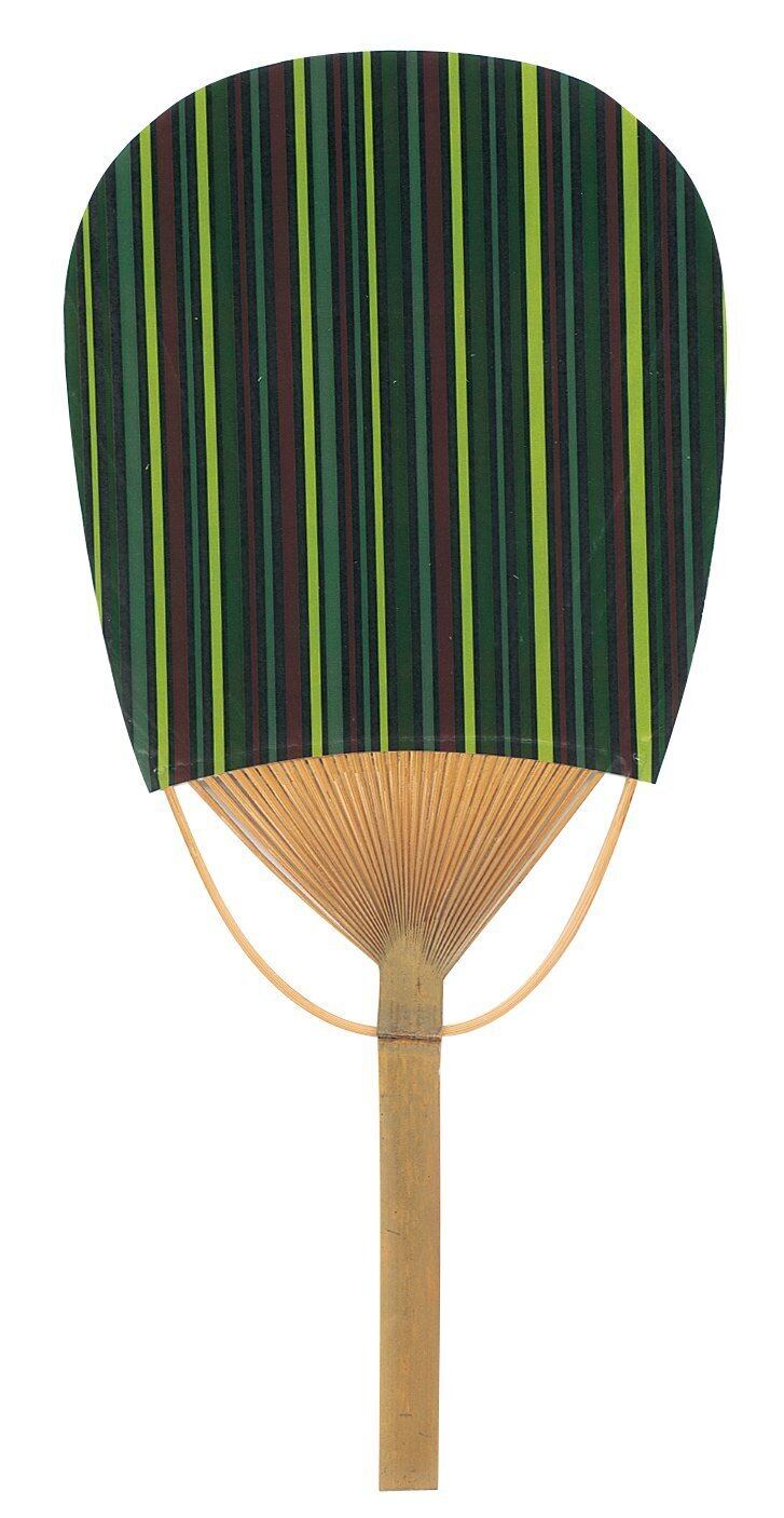 うちわ 男女兼用 紙貼り 小判 しましま 緑 17.5×38