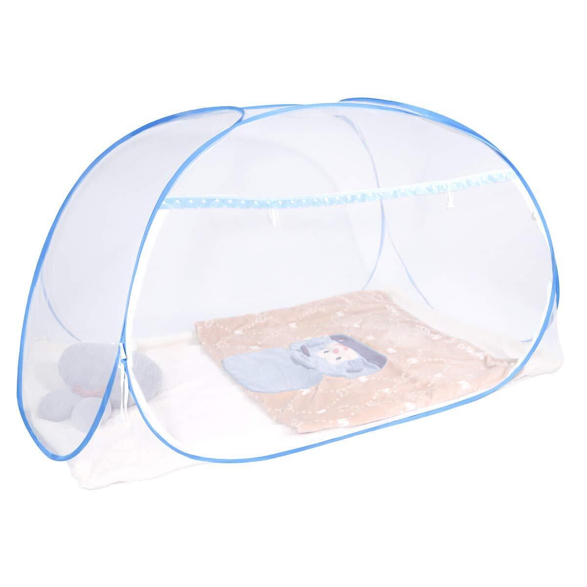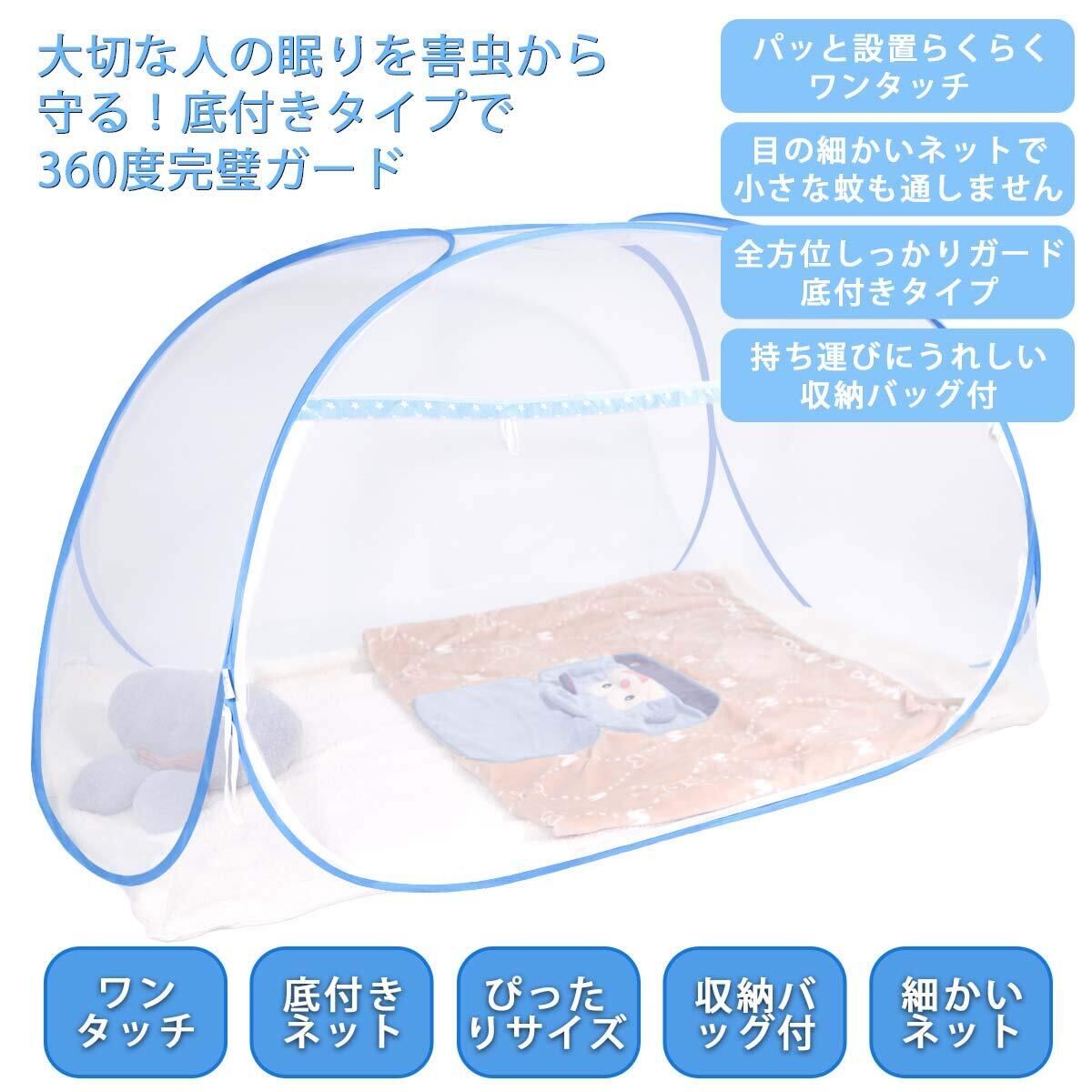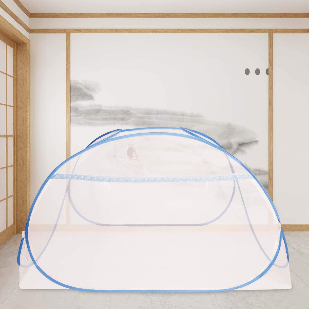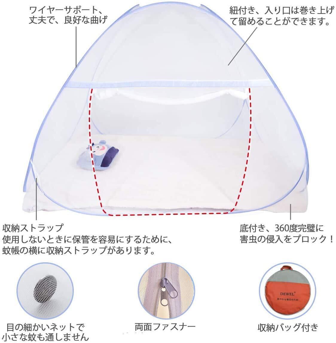 DEWEL 蚊帳 かや ワンタッチ テント式 虫除けネット 底付き 密度が高い 蚊よけ ムカデ対策 洗える 1ドアタイプ モスキートネット 持ち運べる 収納便利 軽量 子供 1人 小(ブルー シングル 100*190*110cm)