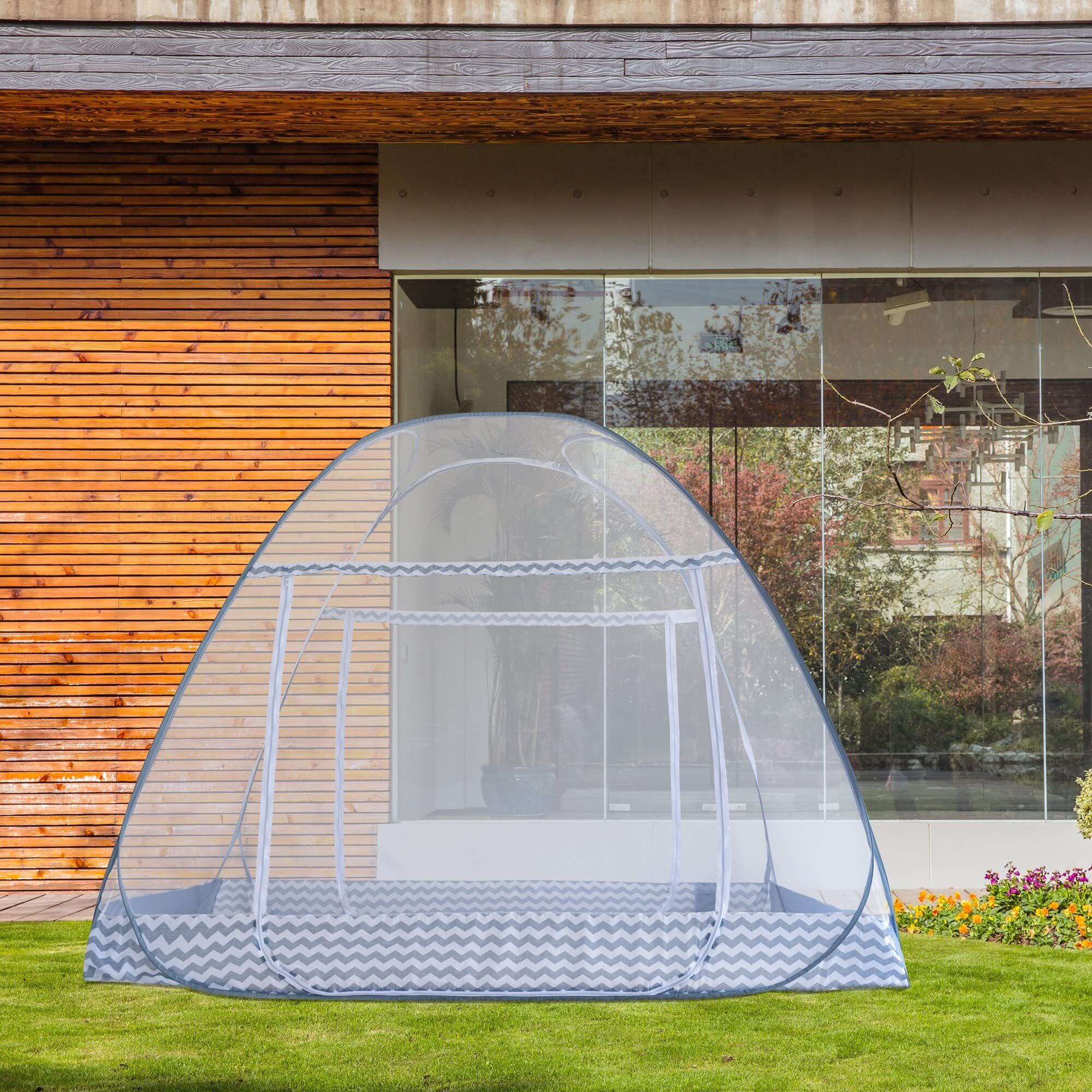 蚊帳(かや) テント式 ワンタッチ 2ドアタイプ 底生地付き 密度が高い 持ち運べる 収納便利 収納袋付 野外キャンプ 旅行 アウトドア 150*200*145