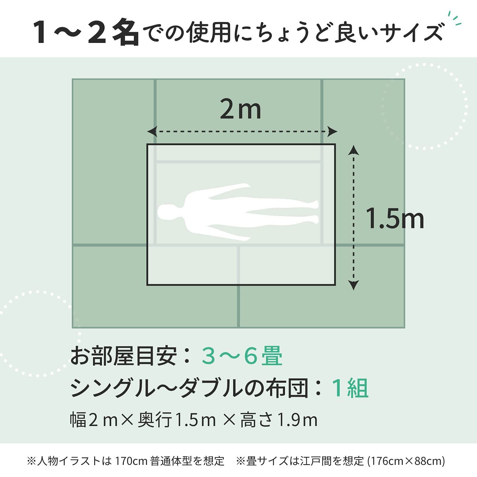 セット内容:蚊帳2mサイズ本体のみ ・タイプ:開閉不可 ・カラー:ホワイト ・本体素材:ポリエステル ・サイズ(使用時):約200x150x190cm(サイズは多少前後する場合がございます) ・重量:約330g