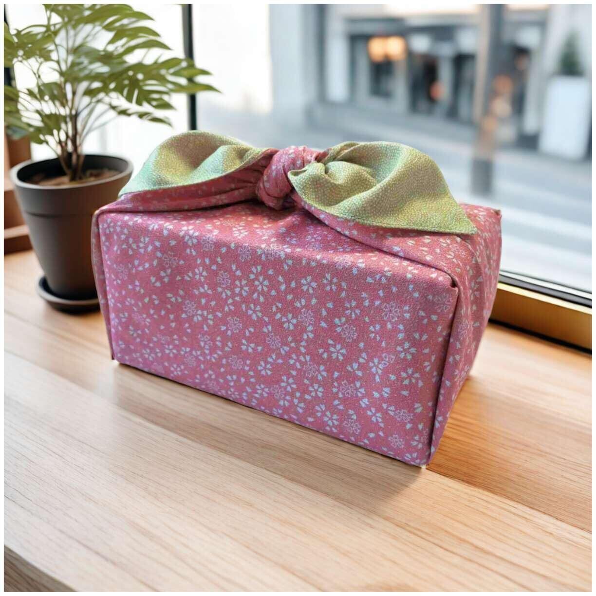 ふろしき 風呂敷 リバーシブル 90cm 大判 鮫小紋 桜 ちりめん 両面染め 二四巾 Lサイズ 四面縫製 お弁当包み ラッピング ギフト包み 瓶包み 着物お稽古バッグ クロス エコバッグ おしゃれ (ワカバ/ピンク90センチ)