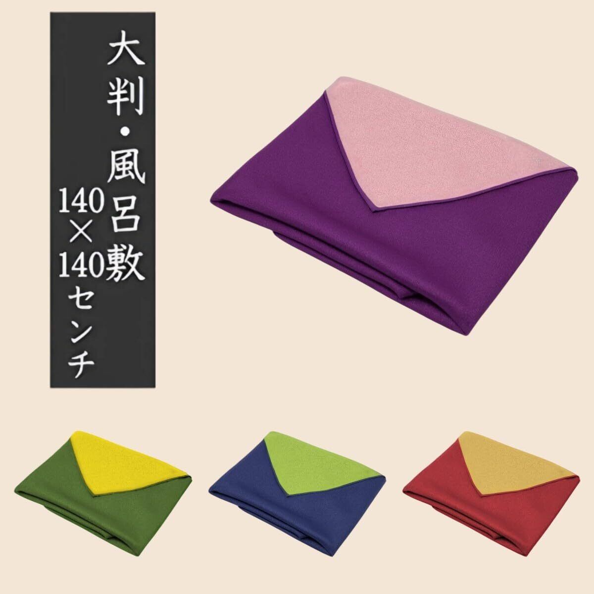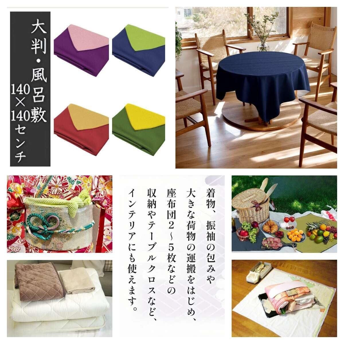 【ビックサイズ 140㎝×140㎝】大きい風呂敷(大判風呂敷)です。着物、振袖、留袖などの着物用、振袖用の包みや大きな荷物の運搬をはじめ、座布団2~5枚などの収納やテーブルクロスなど、インテリアに使えます。大判風呂敷、大風呂敷とも呼ばれる。