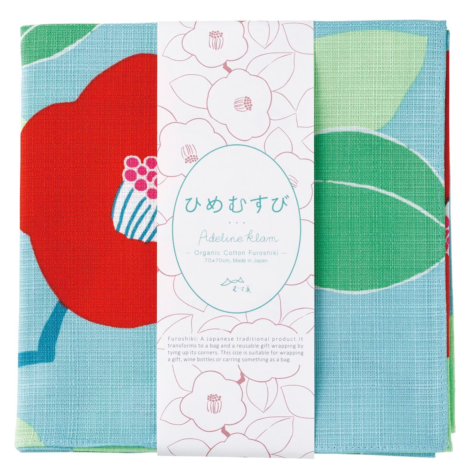 むす美 ふろしき 70 ひめむすび Adeline Klam つばき ターコイズ 70cm オーガニックコットン
