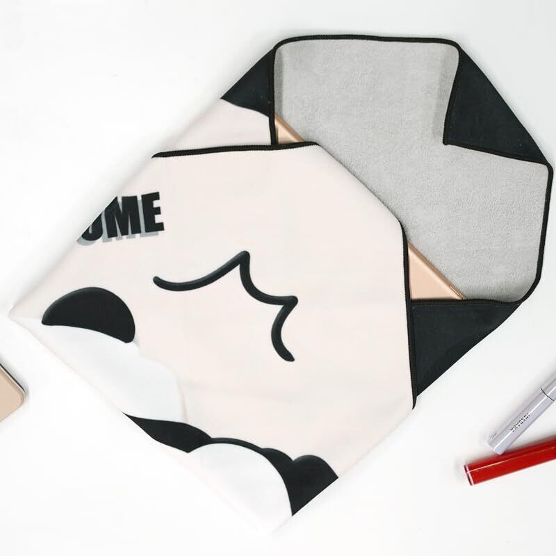 aloe-homeくっつくクロスくつっくタオル 超便利風呂敷 化粧品弁当箱カメラIPADなど包む 吸水 保温 50*50cmカメラ保護 レンズ保護 IPAD保護 化粧品収納 風呂敷 ペタペタ布 マジッククロス (パンダ(黒))