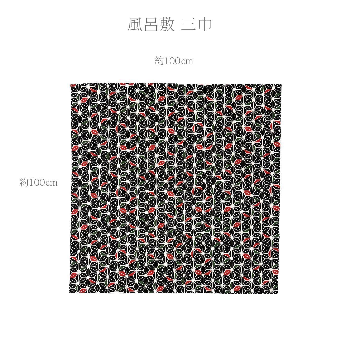 [マシュール] 麻の葉 風呂敷 厚手 100cm コットンシャンタン 三巾 綿100% 日本製 大判 和柄 和風 (ブラック)