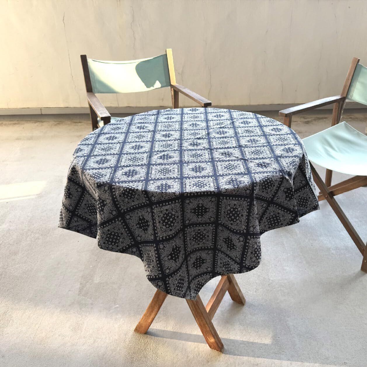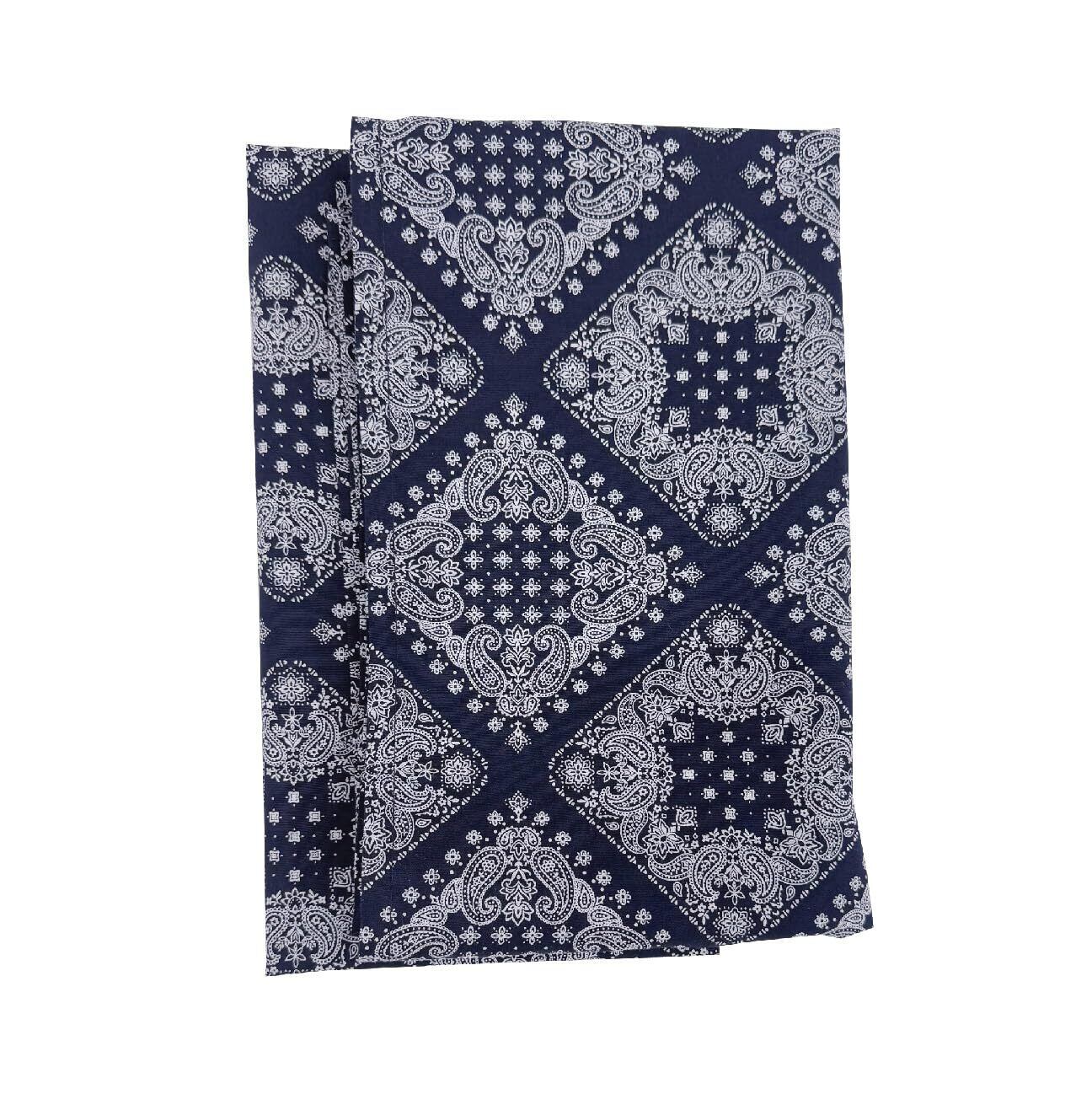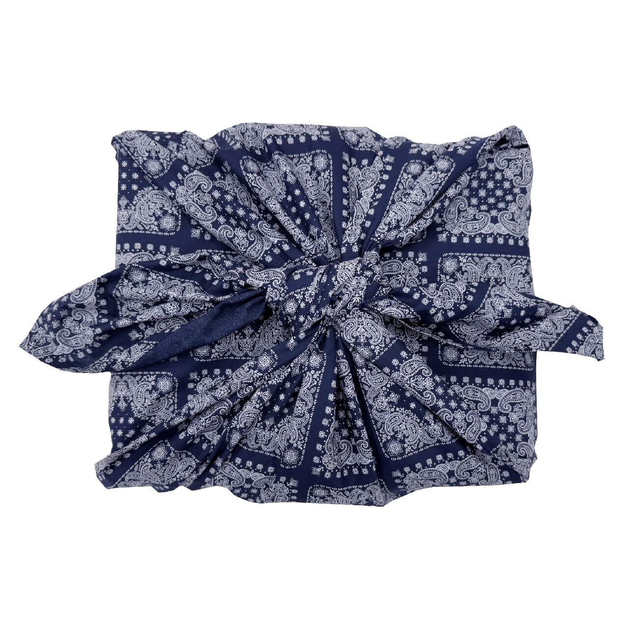 [マシュール] バンダナ柄 風呂敷 100cm ペイズリー 三巾 綿100% 日本製 大判 洋柄 (ネイビー)