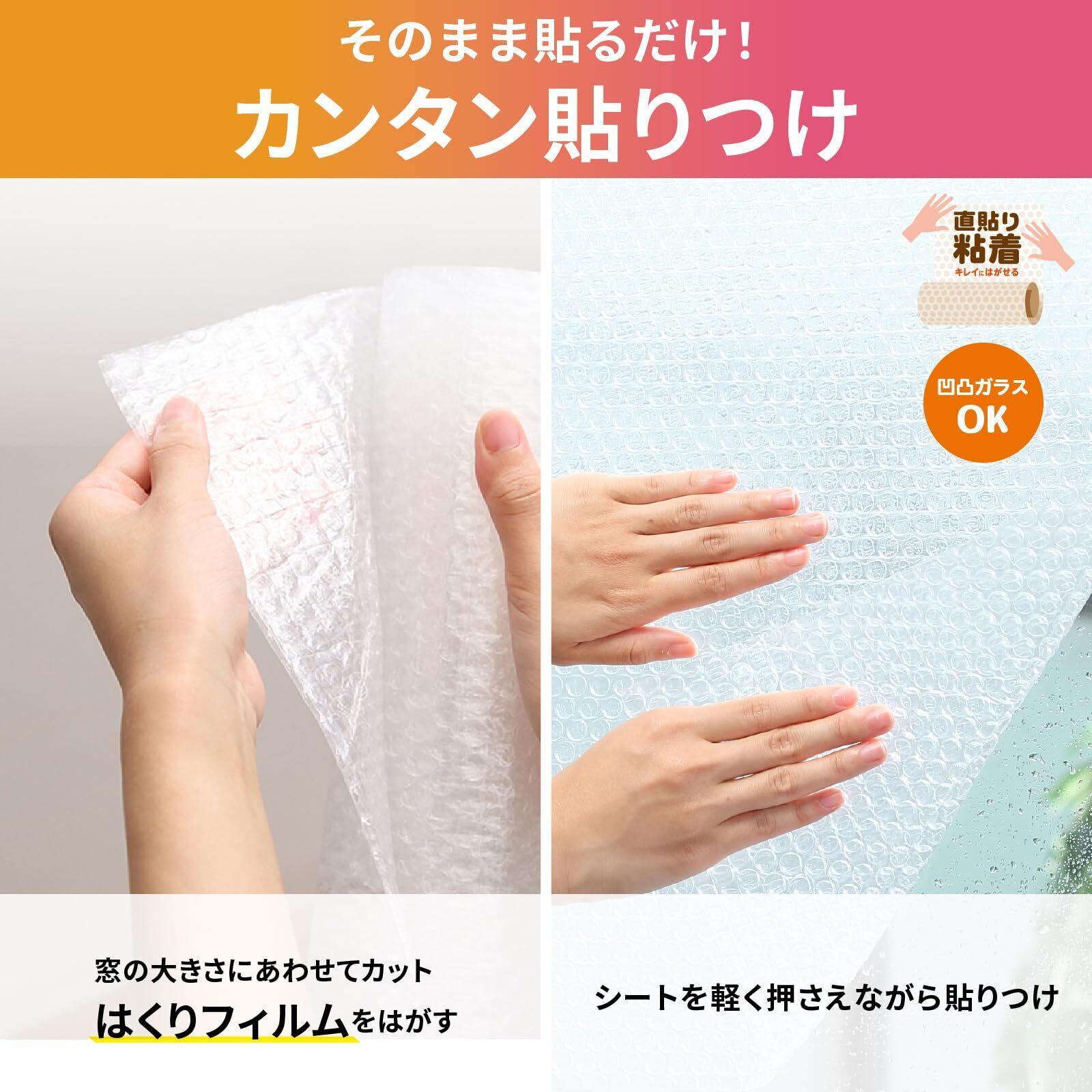 ・窓ガラスとお部屋の間に空気の層をつくることで、熱の移動を防ぎ貼るだけで暖房効果アップ!