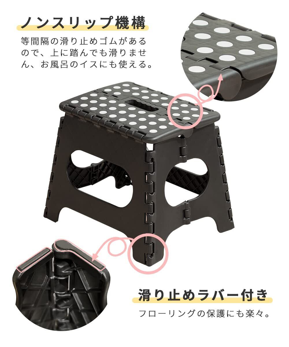 【安定性·揺れない】折りたたみ踏み台の表面に滑り止めポイントが均等に設置されており、底面にも滑り止めゴムが付いているので、安定して使用できます。