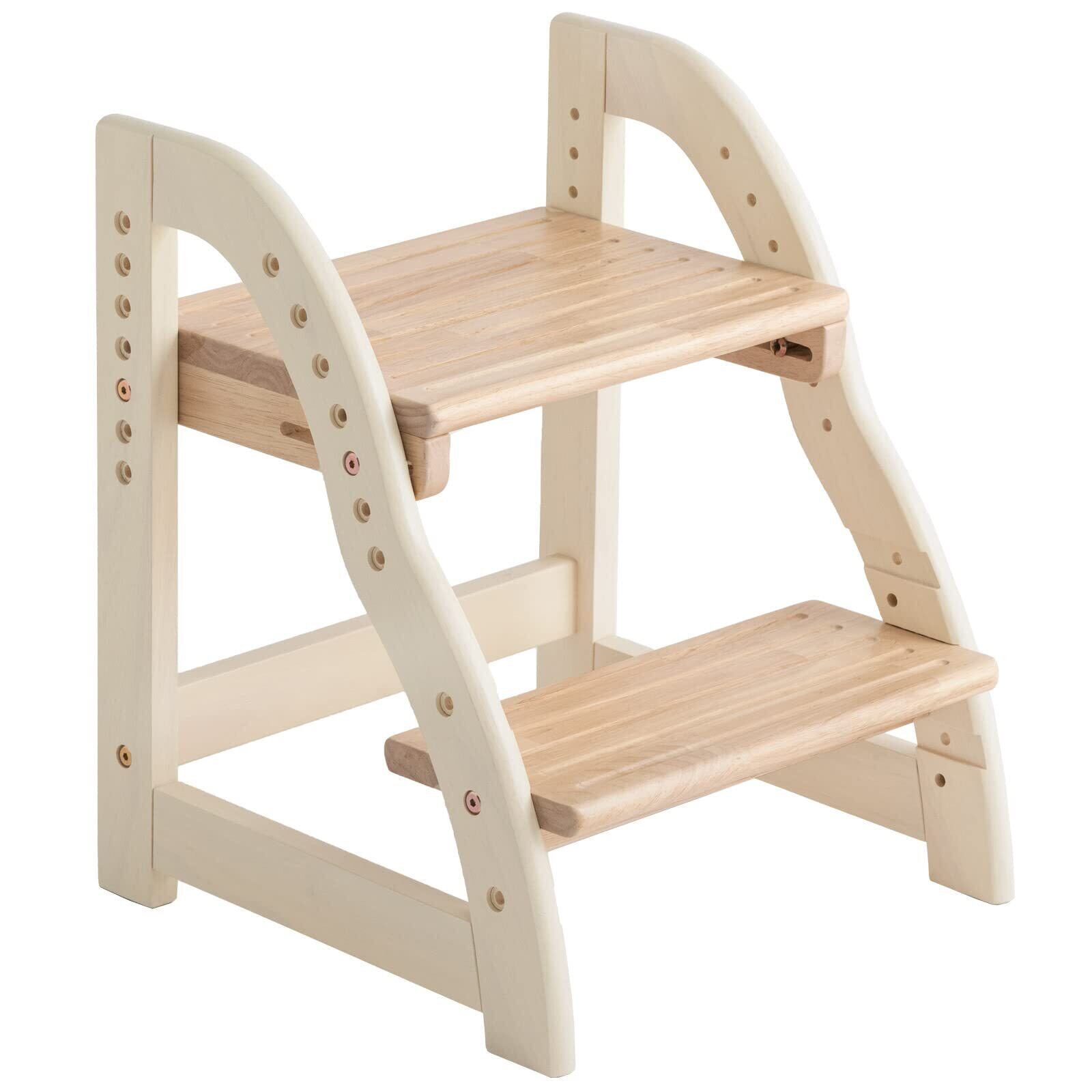 タンスのゲン 踏み台 ステップ台 2段 高さ調整 天然木 耐荷重80kg 子供用 キッチン 洗面所 キッズ アイボリー×ナチュラル 49600837(99534)