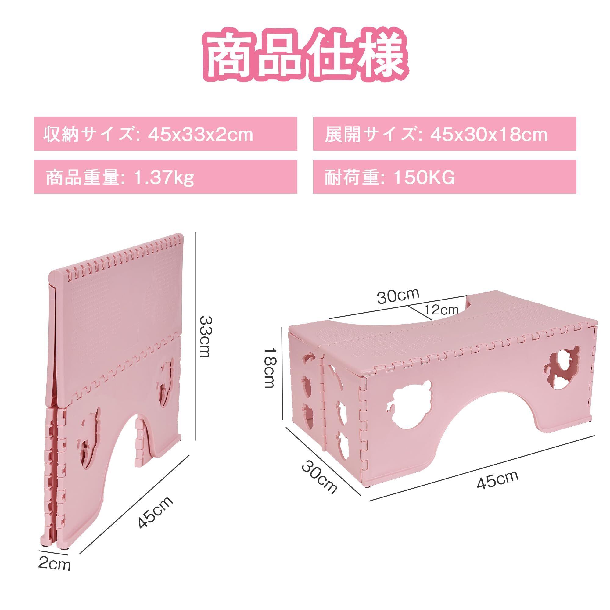 VECELO トイレ踏み台 折り畳み 踏み台 子供トイレトレーニング 高さ18cm ステップ 補助踏み台 補助便座 子供から大人まで適用 多機能 便秘解消 座り姿改善 ベビー用踏み台 足置き台 収納便利 持ち運び 滑り止め ピンク
