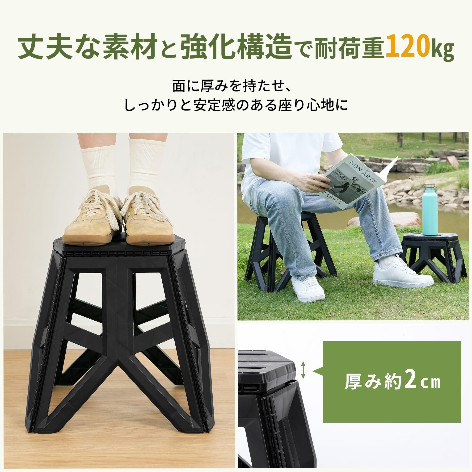 【様様な不整地対応】 踏み台 折りたたみ スツール 耐荷重120kg 高さ39cm 強化構造 チチロバ(TITIROBA) キャンプチェア 軽量 コンパクト アウトドア 室内 屋外 洗車 玄関 ブラック