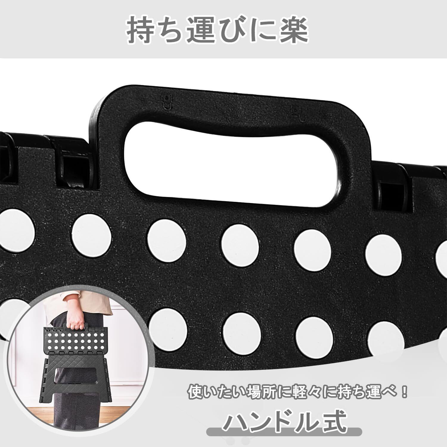 【折りたたみ・省スペース】使用しない時はコンパクトに折りたたむことができるので、収納にも大変便利です。収納時幅はわずか4cm!取っ手付きで使いたい場所に軽々持ち運べ、サッと開いて使える踏み台です。