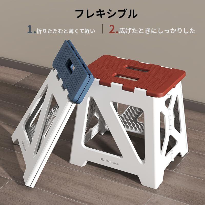 BLACKSPACE 折りたたみ椅子 高さ33CM ステップ台 スツール 踏み台 折り畳み チェア 脚立 滑り止め付 軽量 頑丈 室内 洗車 釣り 玄関 洗面所 耐荷重150kg [グレー ホワイト]