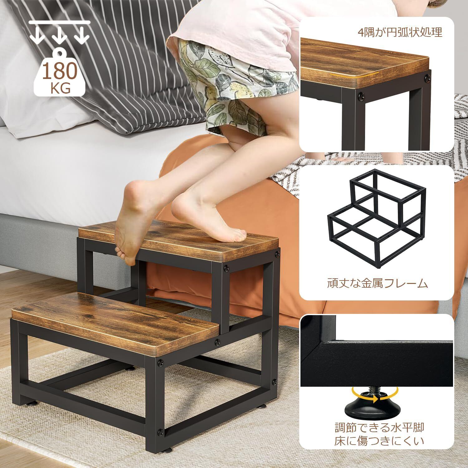 踏み台 脚立 2段ステップ台 足置き台 ペットスロープ ステップスツール 玄関台 スツール台 滑り止め 金属フレーム 子供大人兼用 耐荷重180kg 室内 アウトドア (38*38*35CM(2段))