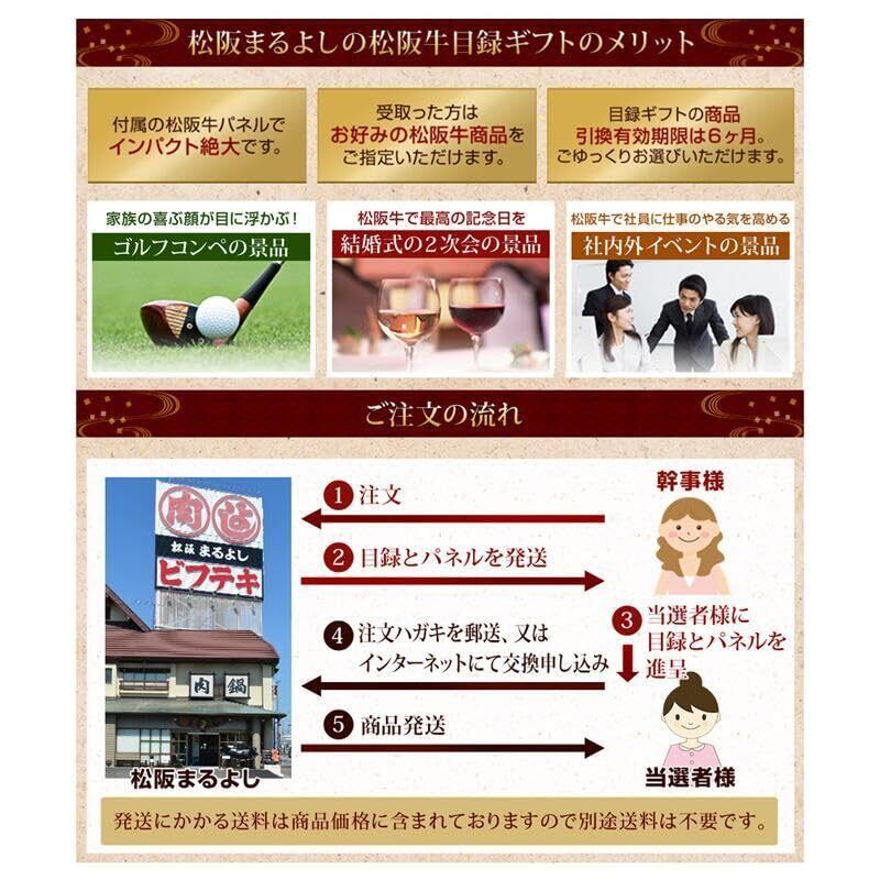 三重県松阪市の松阪牛専門店の松阪まるよし鎌田本店よりお客様の元へ松阪牛景品目録ギフトをお届けします。大切なイベントやパーティをインパクト抜群の特大A3パネルと目録で最大に盛り上げます。