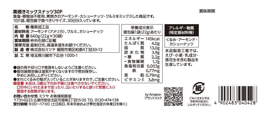 by 素焼きミックスナッツ アーモンド カシューナッツ クルミ 22g×30袋 個包装