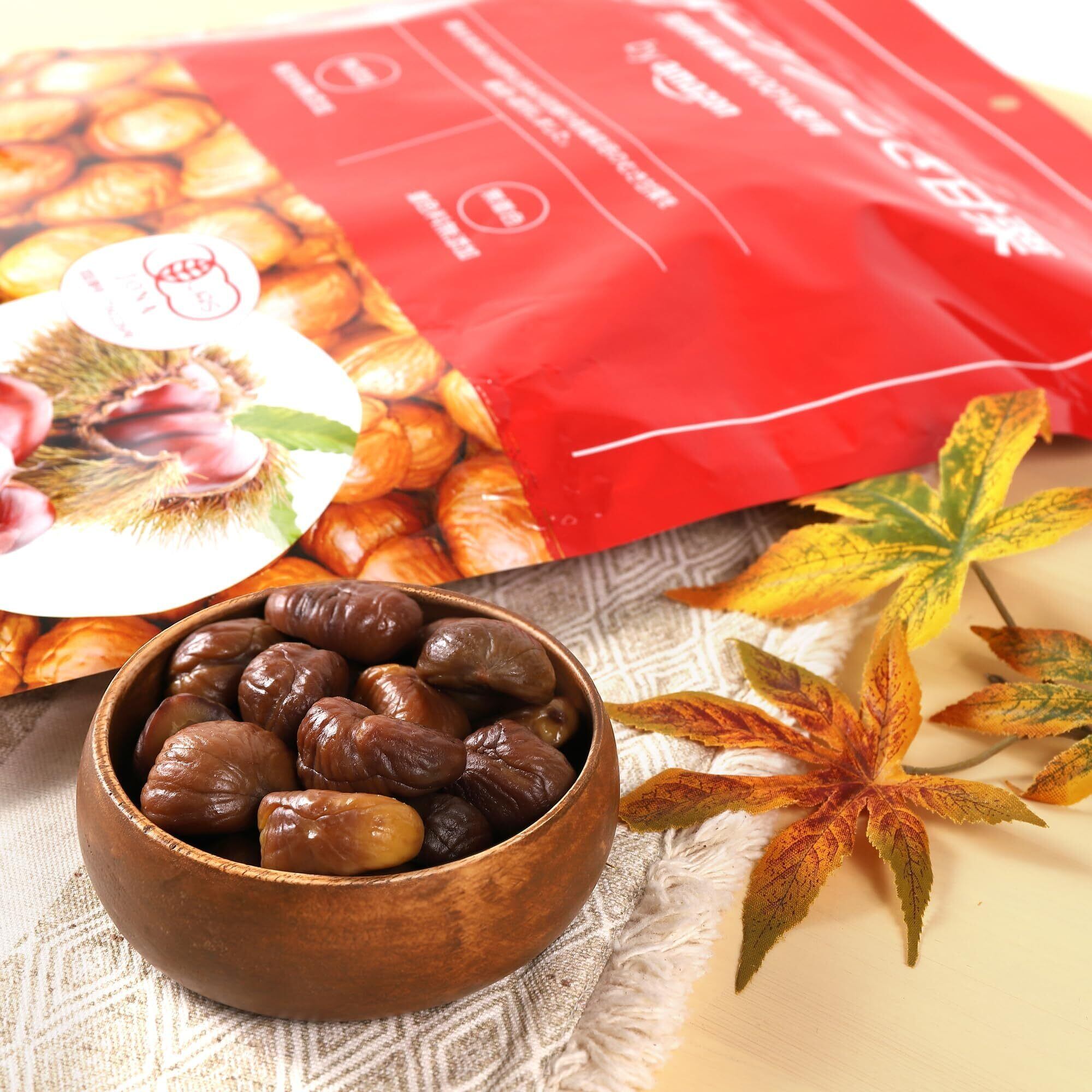 添加・無着色のオーガニックむき甘栗で、栗本来の甘さと美味しさをお楽しみいただけます。むき甘栗に使用される栗は中国特産の品種です。その中でも河北省遷西県は、数ある栗の産地の中でも特に甘味が多く風味豊かな中国最高級の栗として有名です。生産工場では、HACCP、FCCS、有機JAS認定などを取得し、行き届いた管理を行っています。