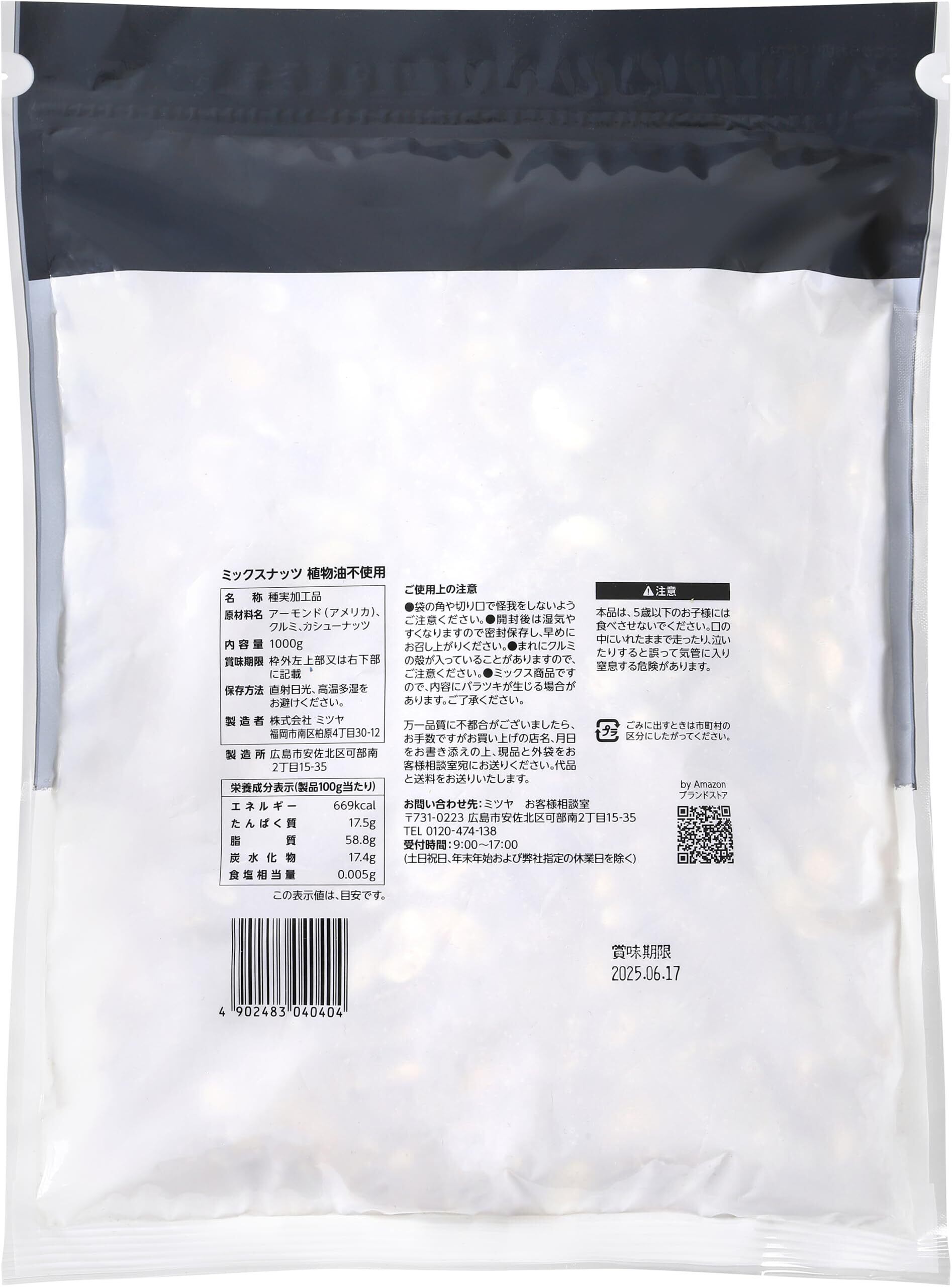 当商品は全て国内で加工・パッキングし、チャック付きの袋に詰めておりますので、乾燥などを防ぎ長い間鮮度を保つことが出来ます。当商品は全て食塩・植物油不使用となっております。アーモンド、カシューナッツは素焼きしているますが、クルミは生のままご提供させて頂いております。