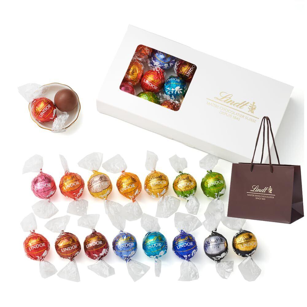 【おいしくお召し上がりいただくために】チョコレートは高温多湿を避け、冬は直射日光や暖房などの温風が直接当たらない場所で、夏は冷蔵庫で、チョコレートに他の食品のにおいが移らないようにビニール袋などに入れ、密封して保管してください。お召し上がりいただく際には、少し前に冷蔵庫から出していただきますとチョコレート本来の風味を感じやすく、美味しく召し上がっていただけます。 【ご注意ください】出品者が「リンツ チョコレート ジャパン Lindt」ではない場合、非公式のため商品内容が異なります。出品者名をご確認の上ご購入をお願いします。 LINDOR Tasting Set 16P