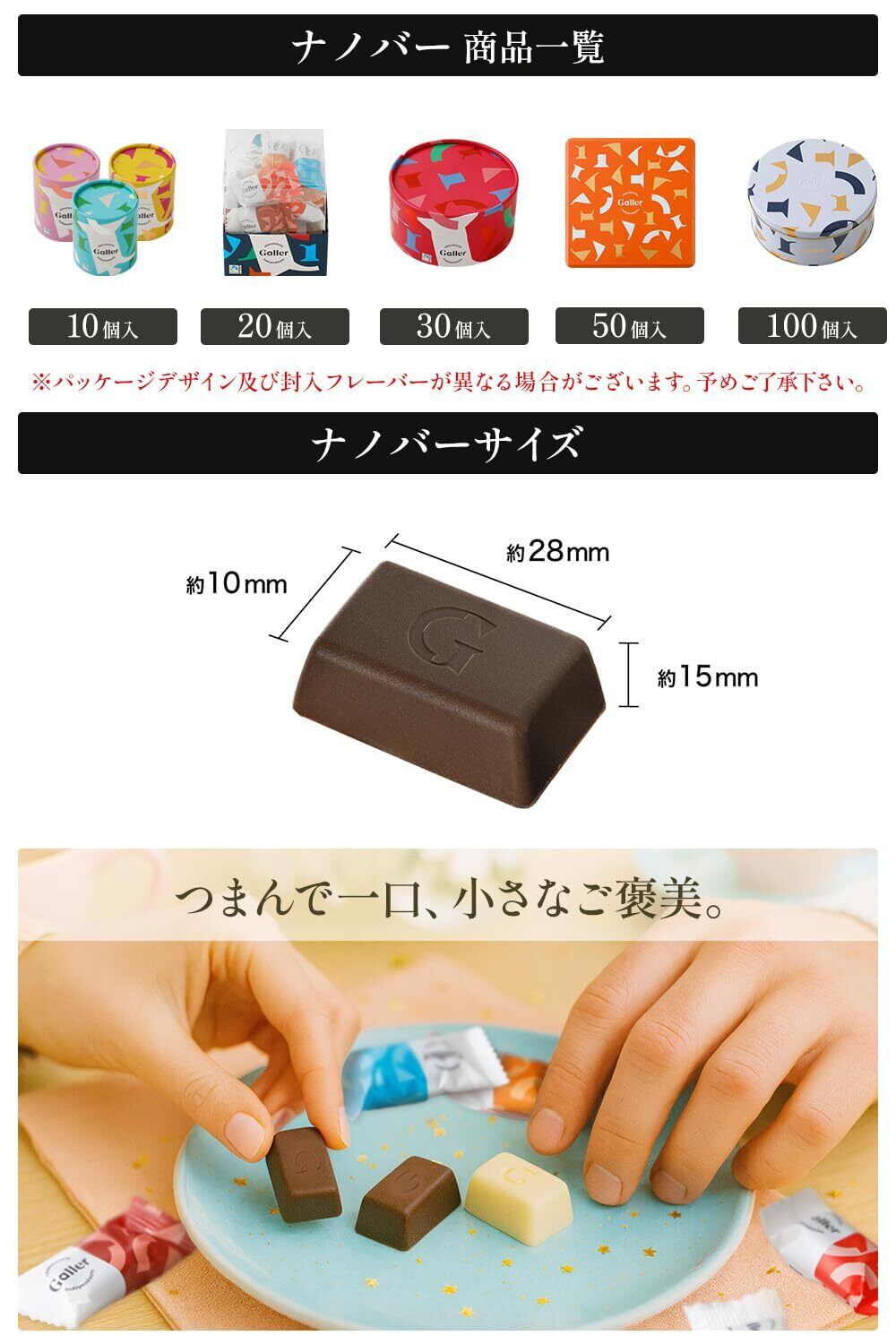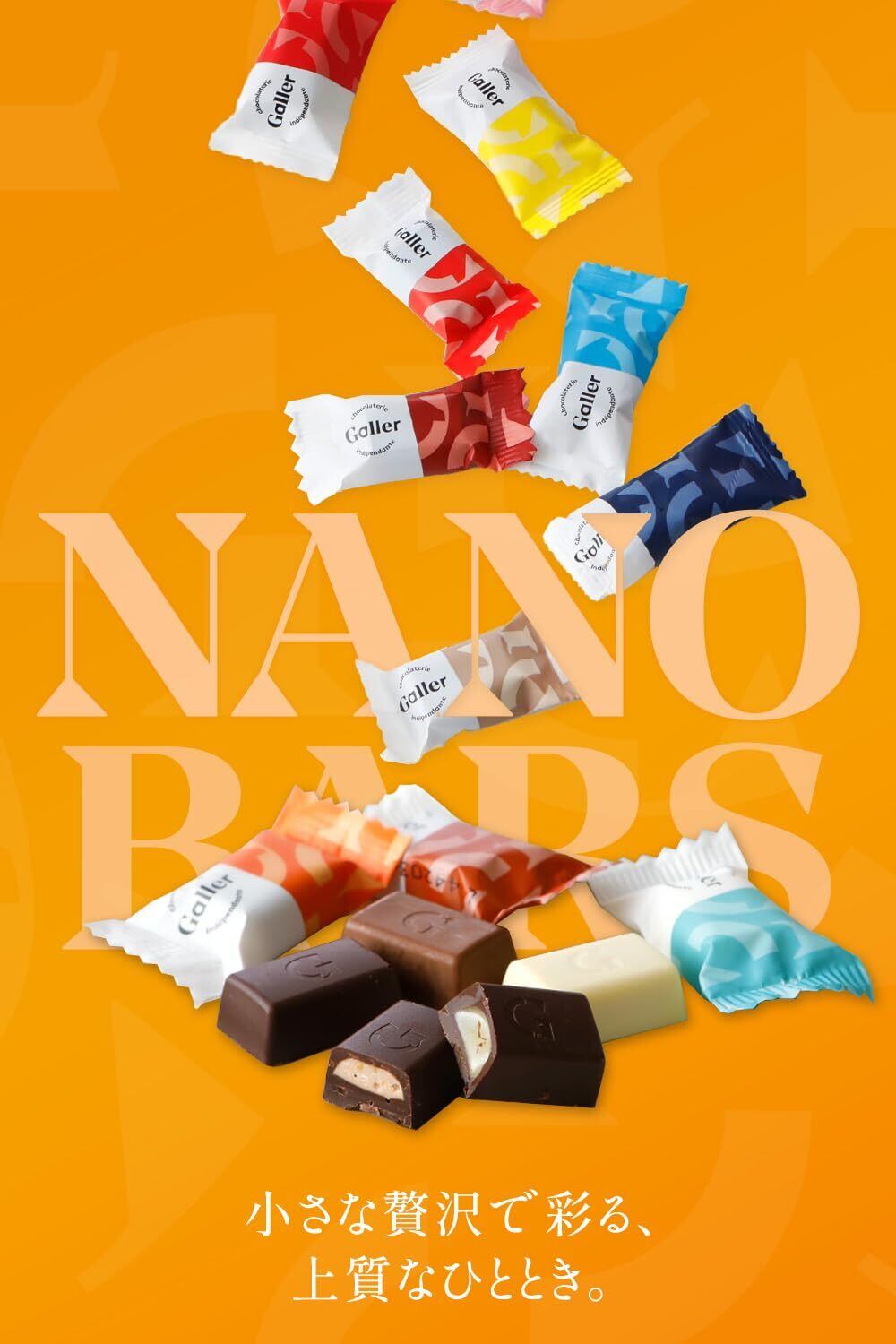 世界に認められたベルギー王室御用達チョコレート『Galler(ガレー)』、定番の「ナノバー」は、上質なチョコレートでこだわりのフィリングを包んだ、一口サイズの贅沢なチョコレート菓子です。ガレーのチョコはパーム油、人工保存料、人工着色料、人工香料は一切使用しておりません。