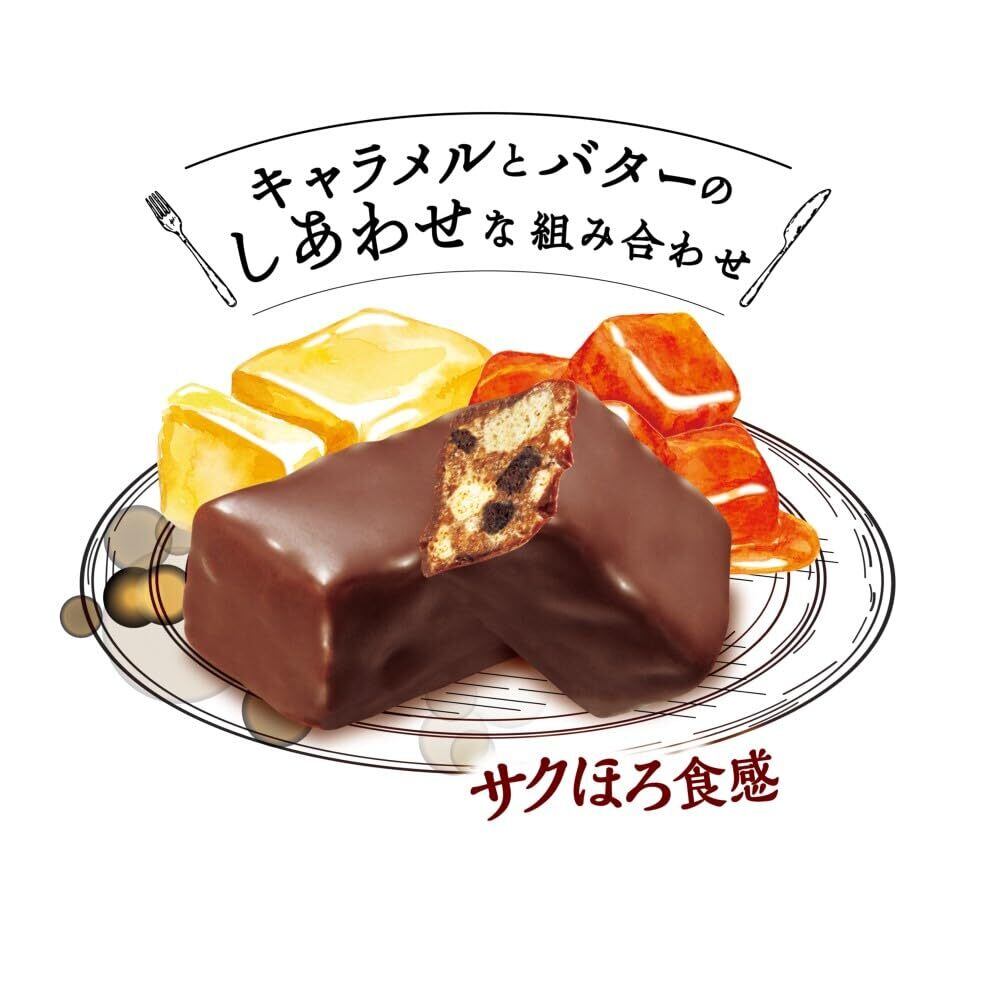 キャラメルとバターを組み合わせたサクほろ食感のチョコバー。ひとくちサイズで食べやすいミニバータイプになったファミリーパック商品です。センターチョコレートにキャラメルパウダーと焦がしバターを配合し、コク深くリッチなキャラメル風味に仕上げました。また、自社で焼成した3種類のビスケットを使用することで、サクッとした食感とほろりと崩れるような絶妙な食感もお楽しみいただけます。
