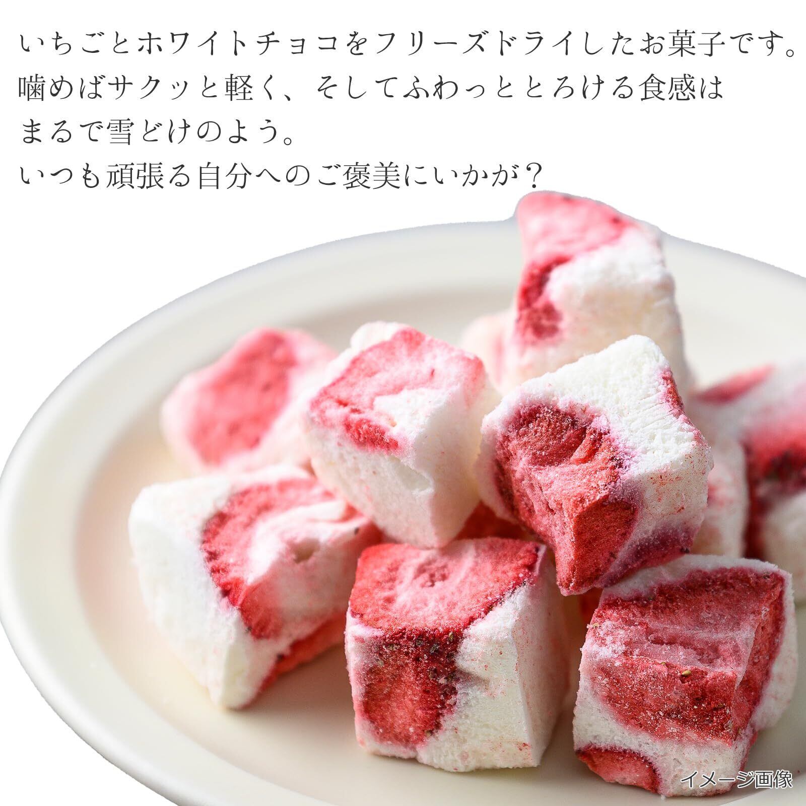 いちごとホワイトチョコをフリーズドライしたお菓子です。噛めばサクッと軽く、そしてふわっととろける食感はまるで雪どけのようです。