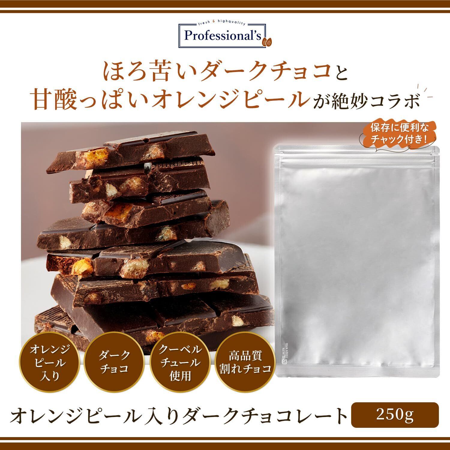 【Professional's】ダークチョコレート オレンジピール入り 内容量 : 250g <口溶けなめらかな割れチョコ><国際規格をクリアしたクーベルチュールを使用><カカオ分70%のハイカカオ> 訳あり スイーツ 割れチョコレート オレンジチョコレート 割れ 濃厚 訳アリチョコ わけあり クーベルチュールチョコ ビターチョコ オレンジピール おやつ 製菓 ネコポス対応