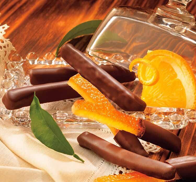 糖漬けのオレンジピールに洋酒をまぶし、甘さ控えめのチョコレートでコーティングしました。 しっとりとしたオレンジピールの食感と香り高くさわやかな味わいが、カカオのビターな風味と調和します。