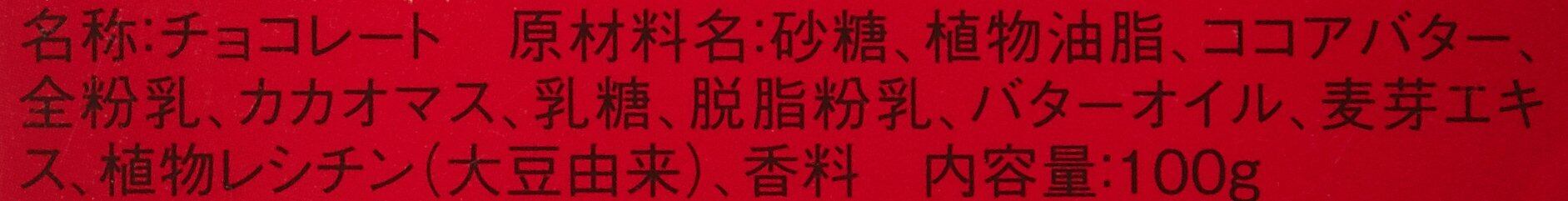 原材料:砂糖、植物油脂(スイス)ココアバター(西アフリカ・中南米)