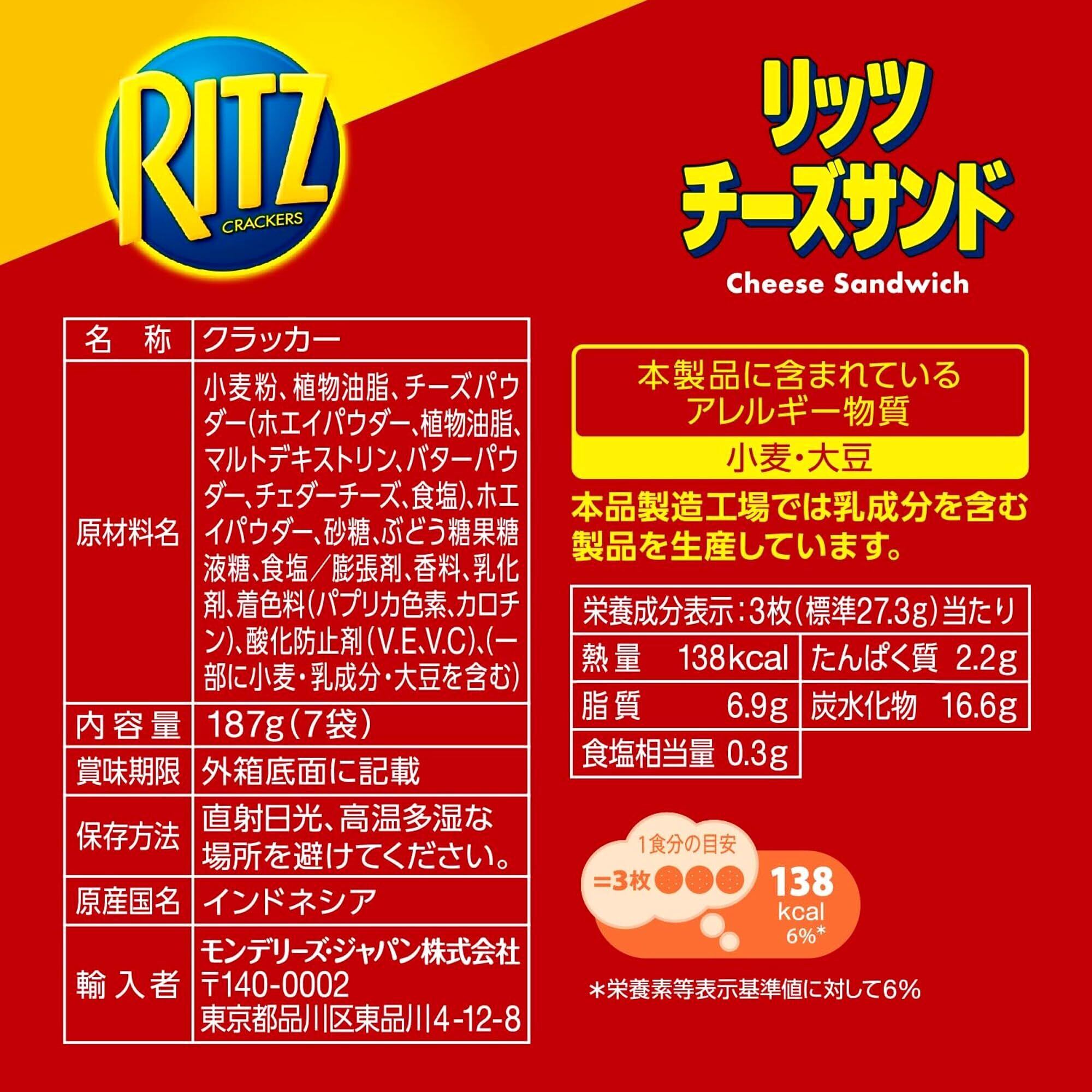 モンデリーズジャパン リッツ ファミリーパック チーズサンド 187g