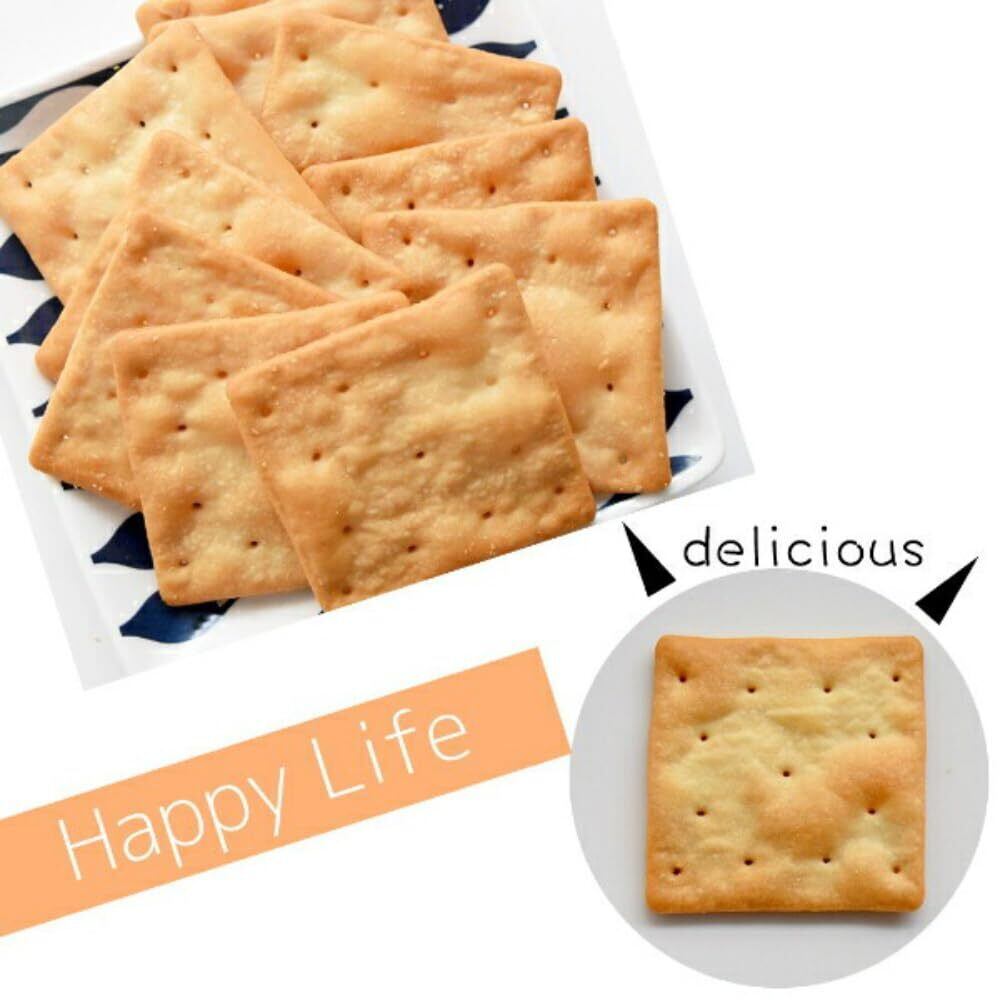 昔ながらの素朴なプレーンクラッカーです。おやつや朝食にどうぞ。栄養成分【85gあたり】 エネルギー 432kcal、たんぱく質 6.6g、脂質 21.4g、炭水化物 53.2g、ナトリウム 587mg ご注意(免責)>必ずお読みください 開封後は、できるだけ早くお召し上がりください。