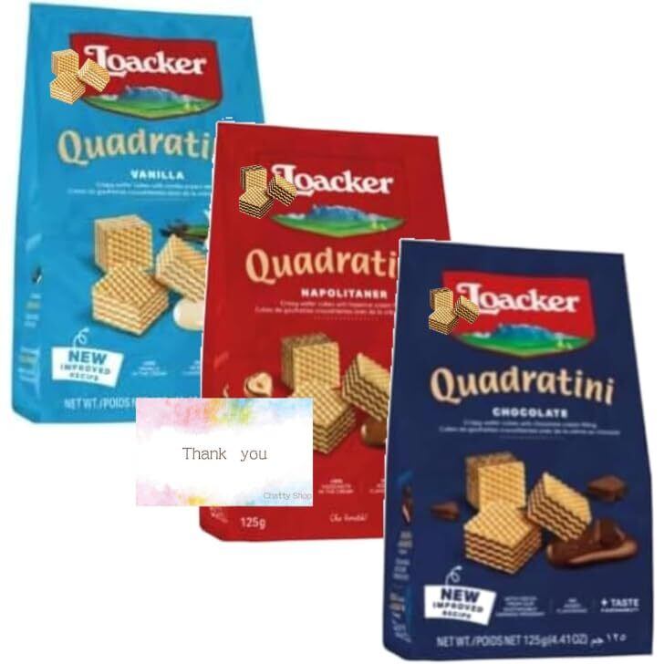 【3種セット】 ローカー クワドラティーニ ウエハース 各125g(バニラ ナポリターナ チョコレート )オリジナルメッセージカード付き
