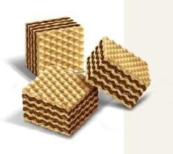 豊かな味わいのヘーゼルナッツクリームを5層のクリスピーウエハースでサンドして一口サイズのキューブにしました。独特の香ばしさが自慢です。