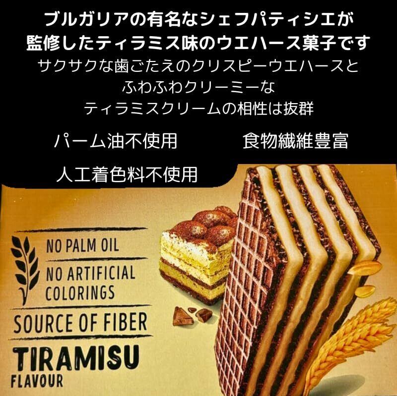 「味こそ要」をキーワードに、食感と美味しさにこだわったウエハースです。サクサクな歯ごたえのクリスピーウエハースとふわふわクリーミーなティラミスクリームの愛称は抜群。ミシュランの星を獲得したレストランや一流ホテルで経験を積み、様々なコンテストで賞を獲得するなどヨーロッパで活躍するブルガリアのシェフパティシエ、アレックス・イヴァンチェフが監修。ウエハースの美味しさを追求したマイモット、ティラミス味です。パームオイル不使用で環境にも配慮しています。