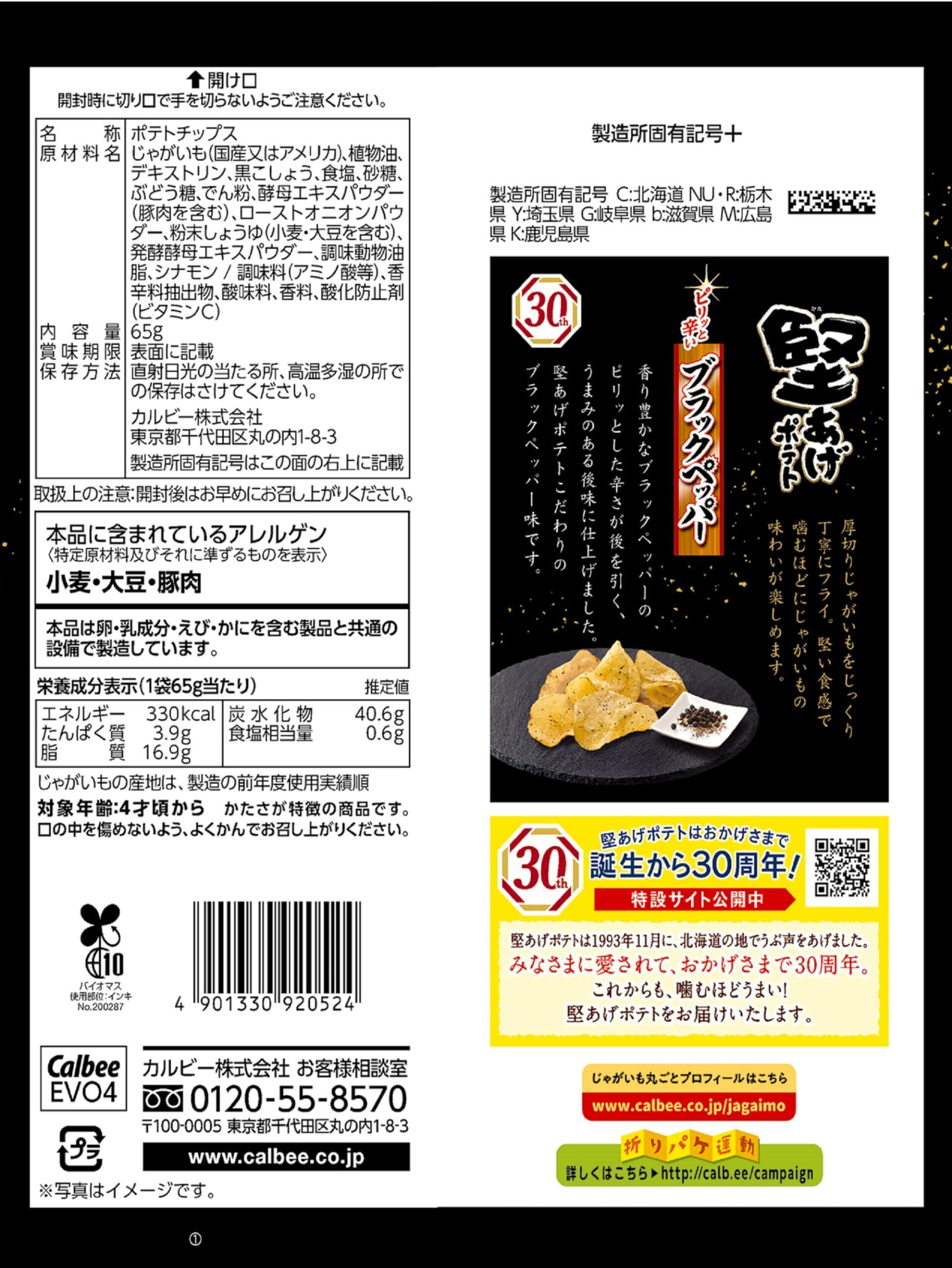 [堅あげポテト]カルビー 堅あげポテト ブラックペッパー 65g×12袋 お菓子 おやつ おつまみ 間食 ポテトチップス