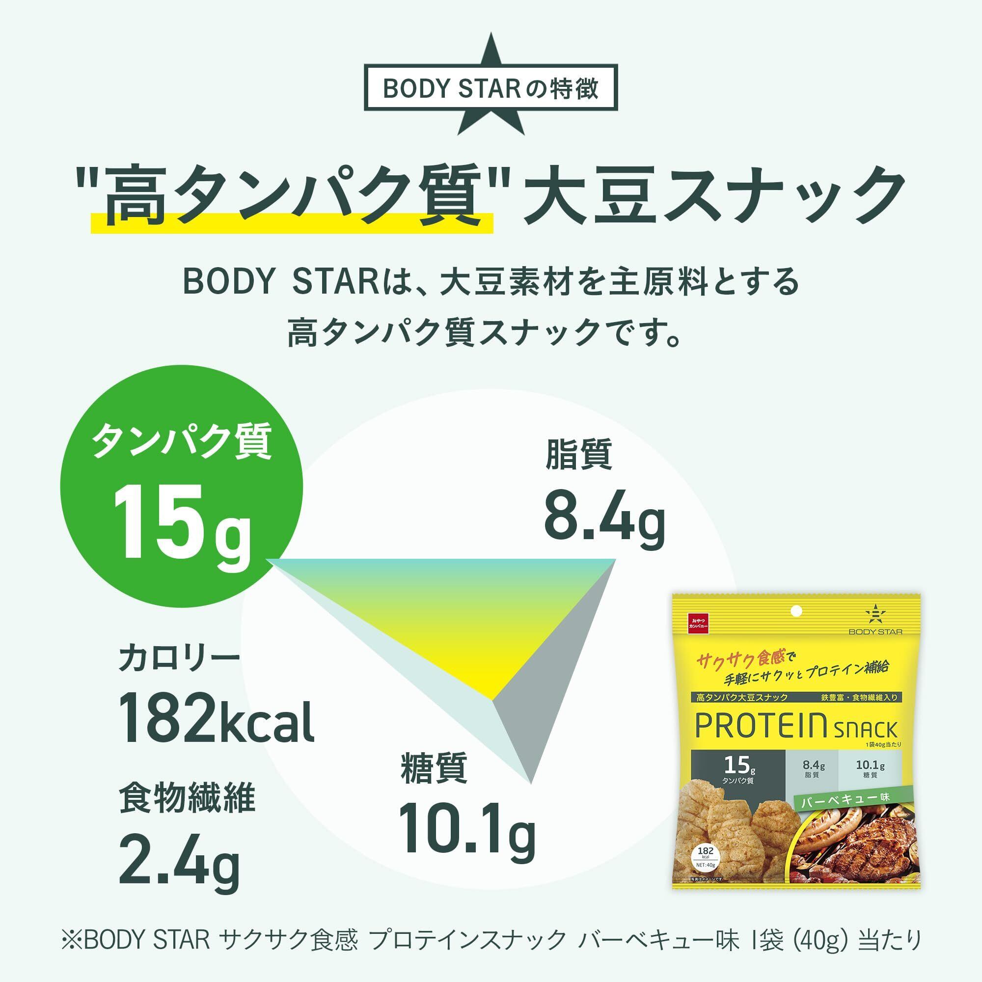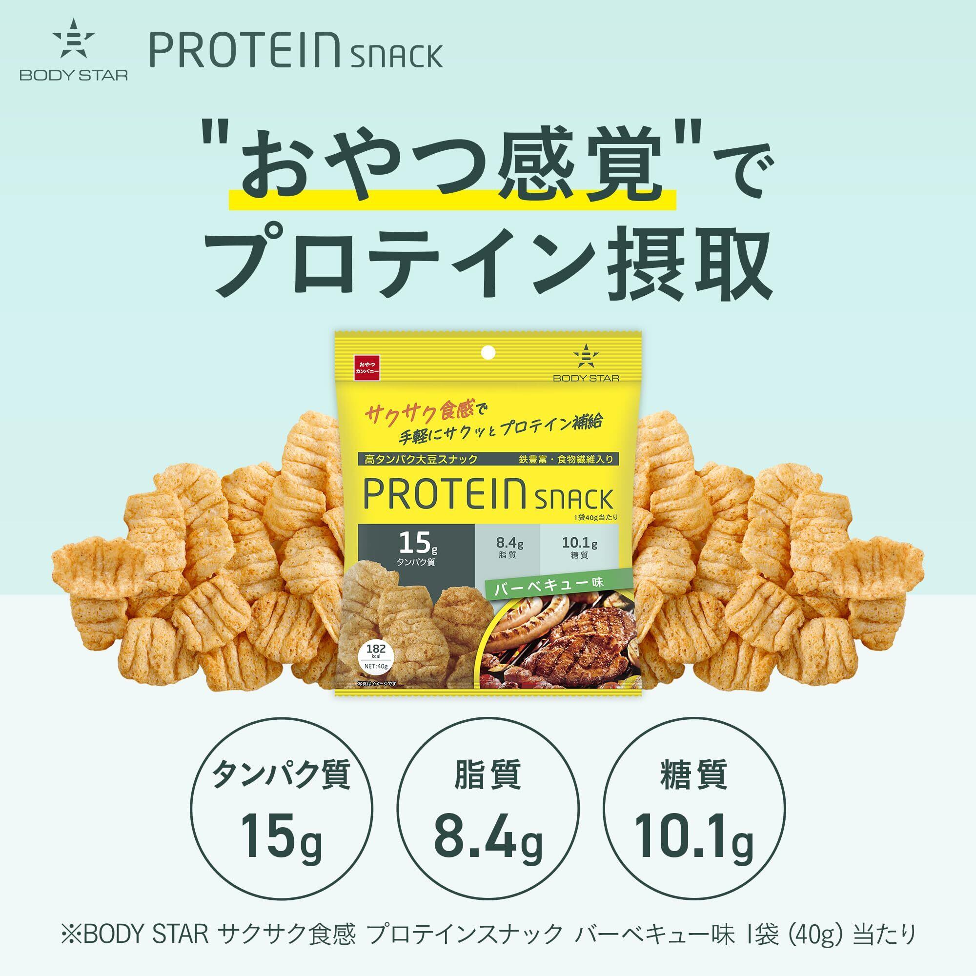 【公式】BODYSTAR サクサク食感プロテインスナック バーベキュー味 | 40g×12袋タンパク質15g 大豆 食物繊維 鉄 亜鉛 アルギニン おやつカンパニー