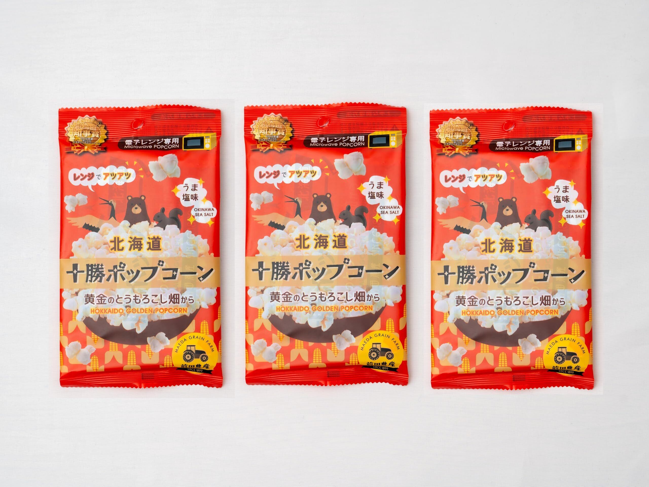 【3袋セット】 電子レンジ専用 北海道十勝ポップコーン~黄金のとうもろこし畑から~