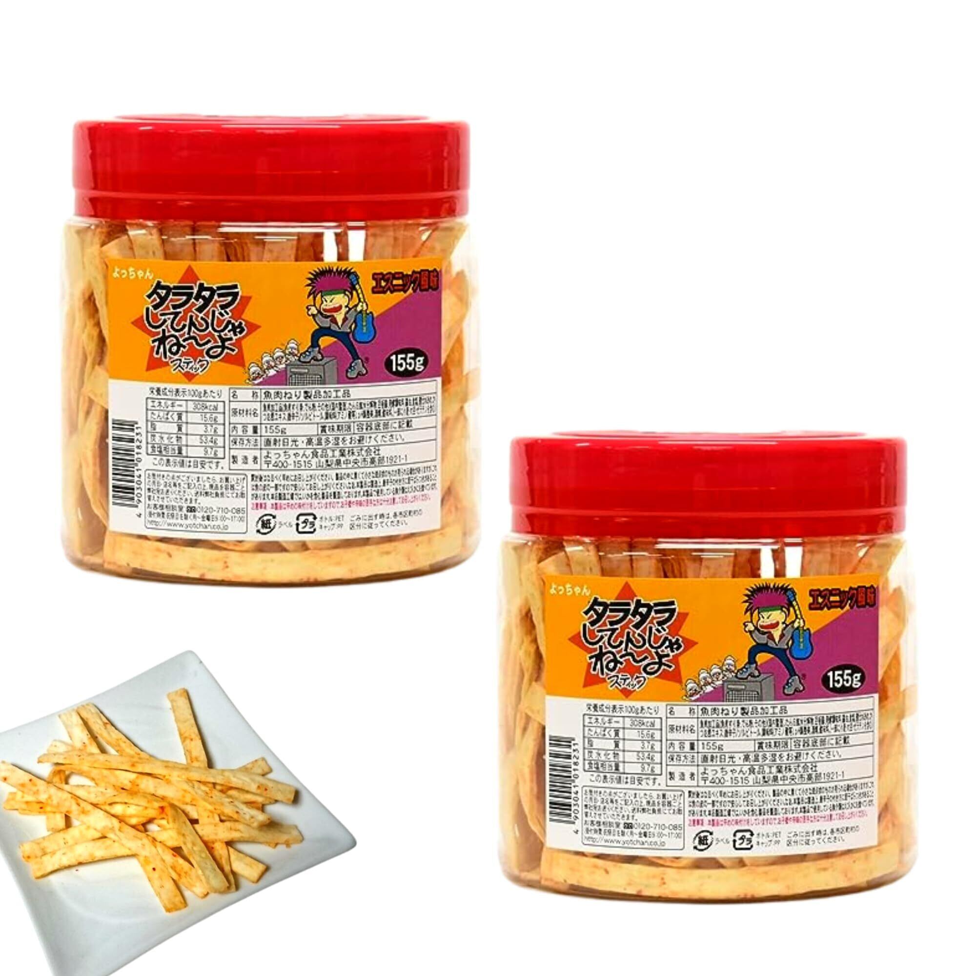 よっちゃん〈 タラタラしてんじゃね~よ スティック ポット 155g 〉 エスニック風味 業務用 大容量〔 たっぷり/タラ/鱈/ボトル入り/おやつ 〕駄菓子 珍味【K-Brightお手拭き】 (2個155, グラム)