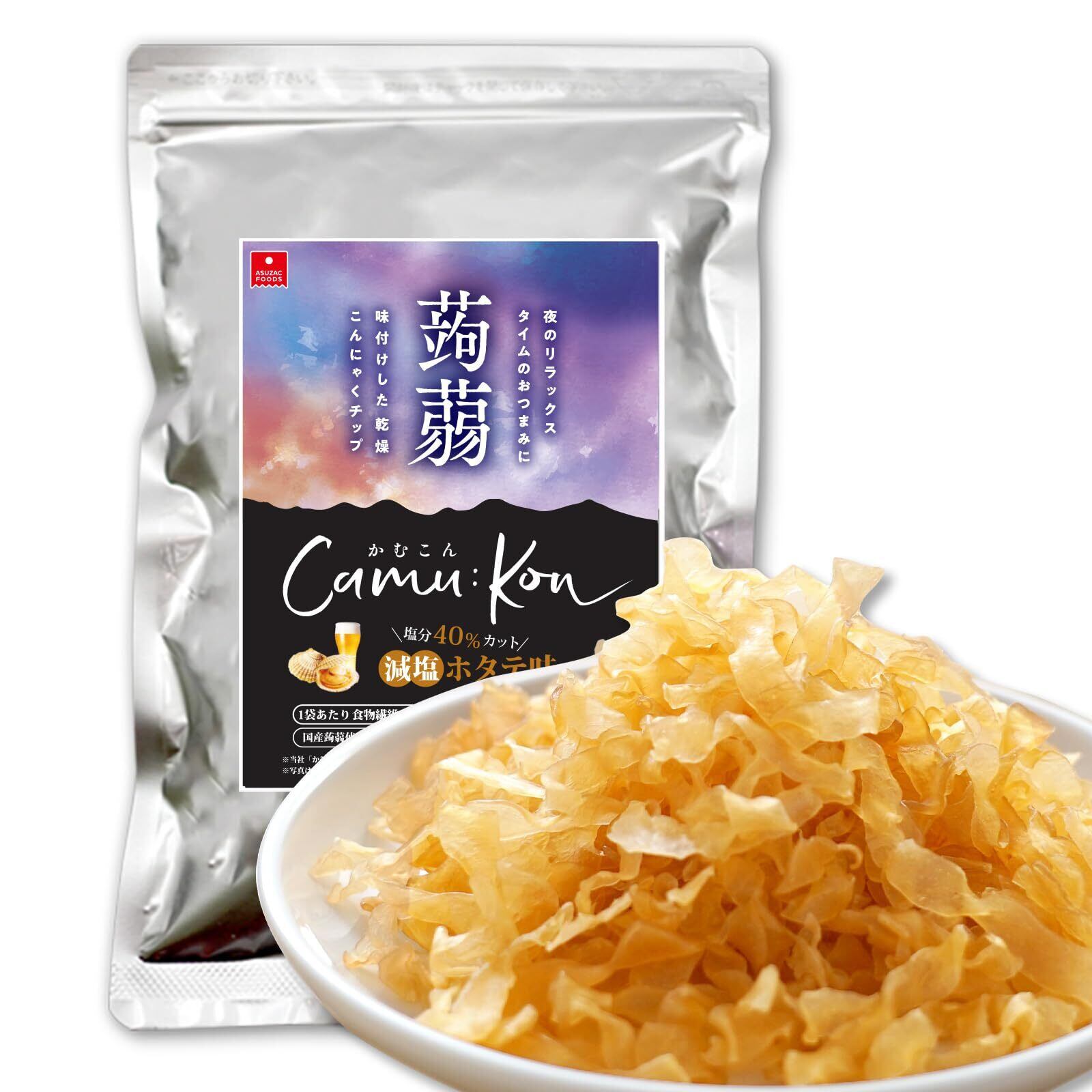アスザックフーズ かむこん こんにゃくのおやつ 減塩ホタテ味 [罪悪感のないヘルシーなおやつ] 国産蒟蒻 おつまみ ジャーキー ホタテ 減塩 75g ×1袋