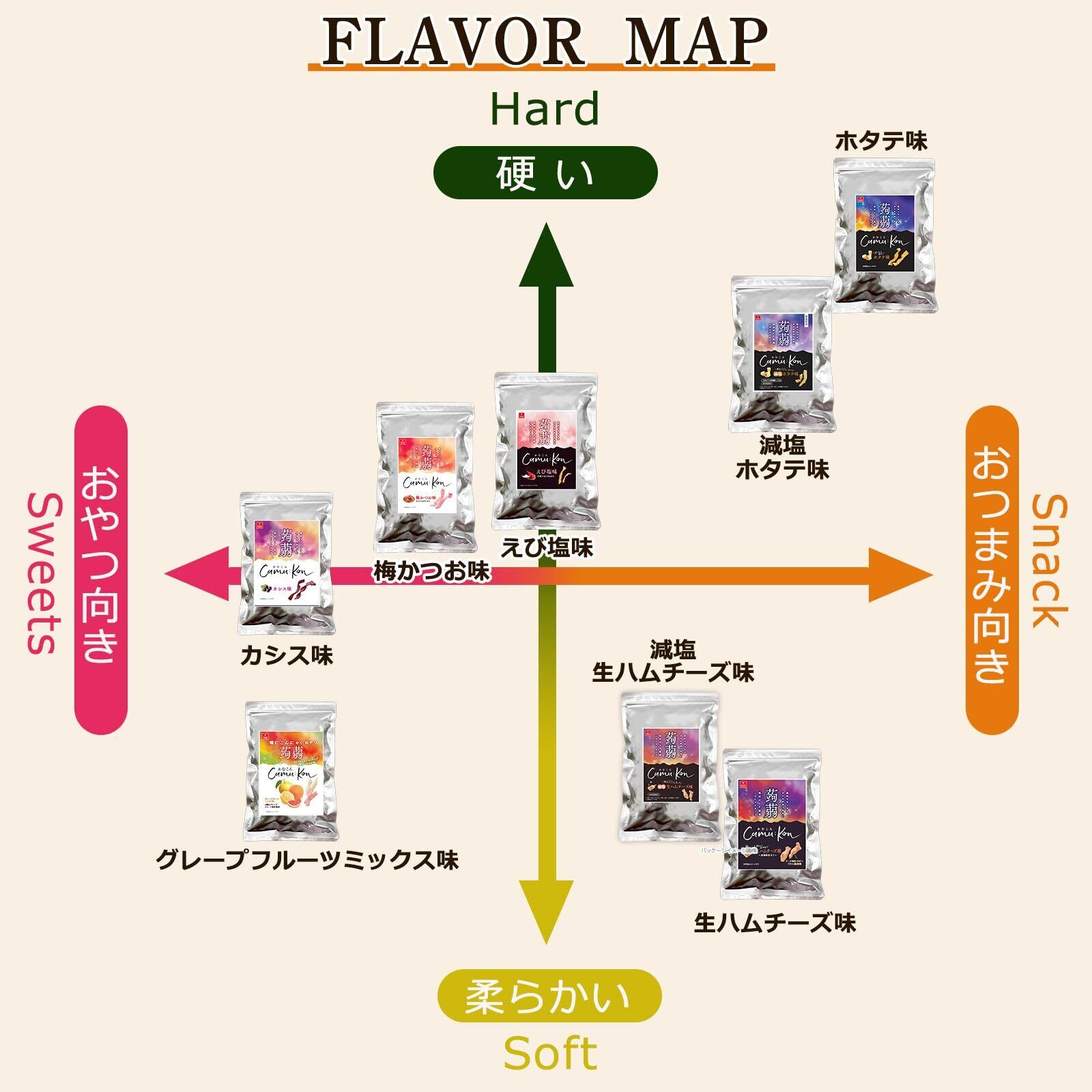 【「噛む」こんにゃくのおやつ】味付けした国産蒟蒻を、そのまま乾燥させて作った、ちょっと硬いグミのような食感の「噛む」こんにゃくの新しいおやつです。手でつまんでも汚れないのもうれしいポイント!全8フレーバーなので食べ比べも楽しめる!普段のおやつに、おつまみに、ダイエット中のお供に。国産蒟蒻使用。