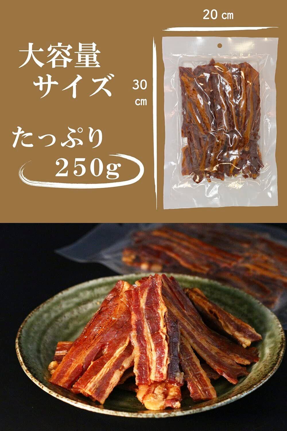 どっさり豚バラ焼肉ジャーキー 250g おつまみ 珍味 〔タレに付けた豚バラ焼肉を柔らかさを残して乾燥〕〔温めるとさらにおいしさアップ〕〔日比谷フレンチレストラン料理長監修〕