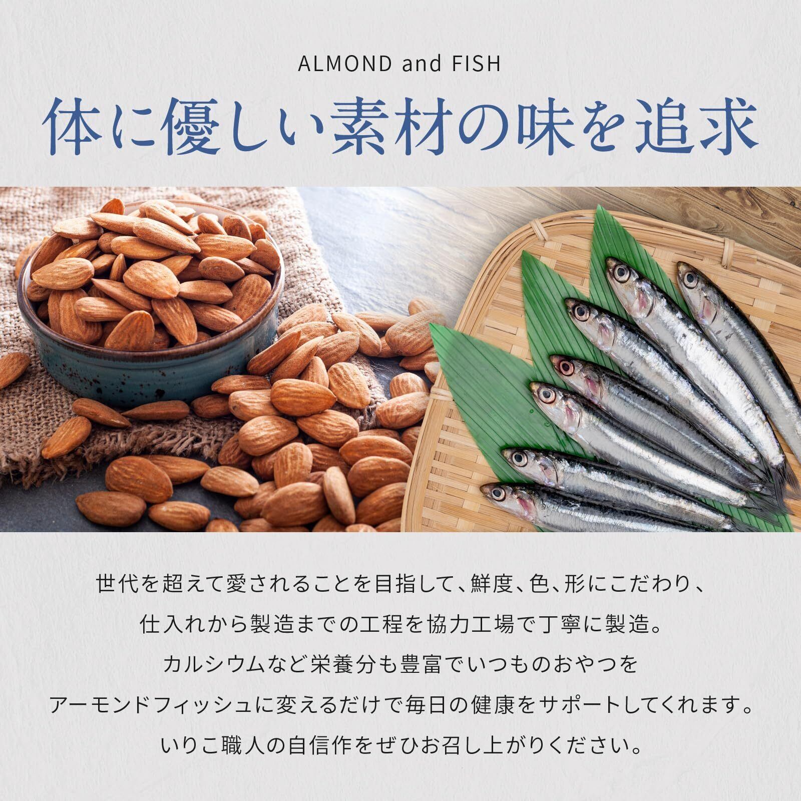 【国産小魚とアーモンドをブレンド】瀬戸内海・九州産の片口いわしと、無塩・無油・無添加の素焼きアメリカ産アーモンドを使用。小魚の旨味とアーモンドの香ばしさが絶妙にマッチしたおやつ。