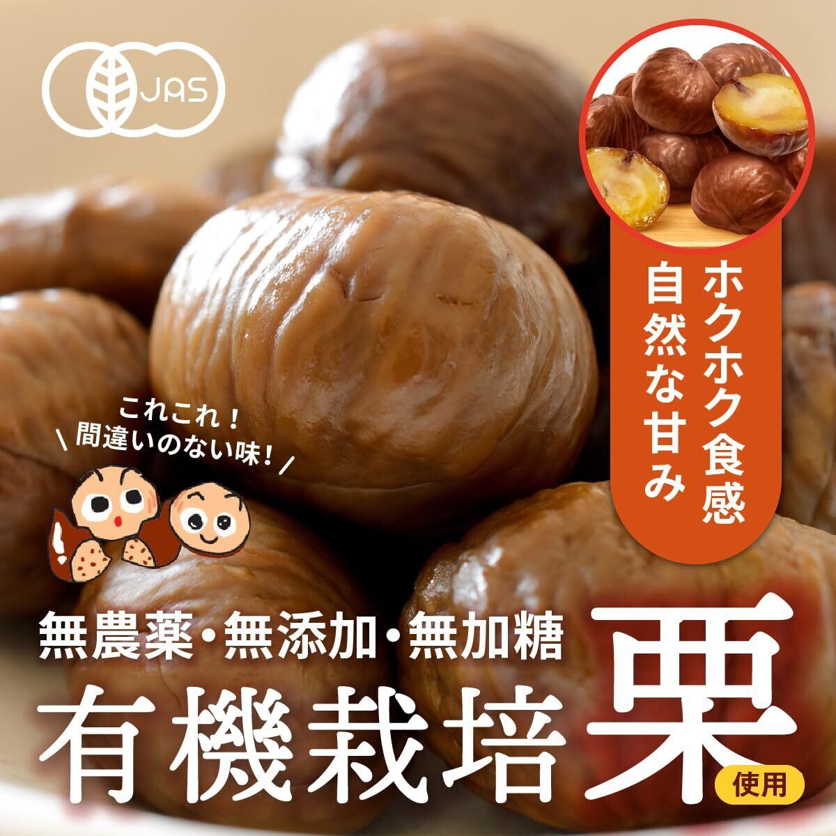【日本の有機JAS認証取得】日本の厳しい基準を満たした「有機JAS認証」を受けた栗のみを原料として使用しており、高い品質と安全性がされています。