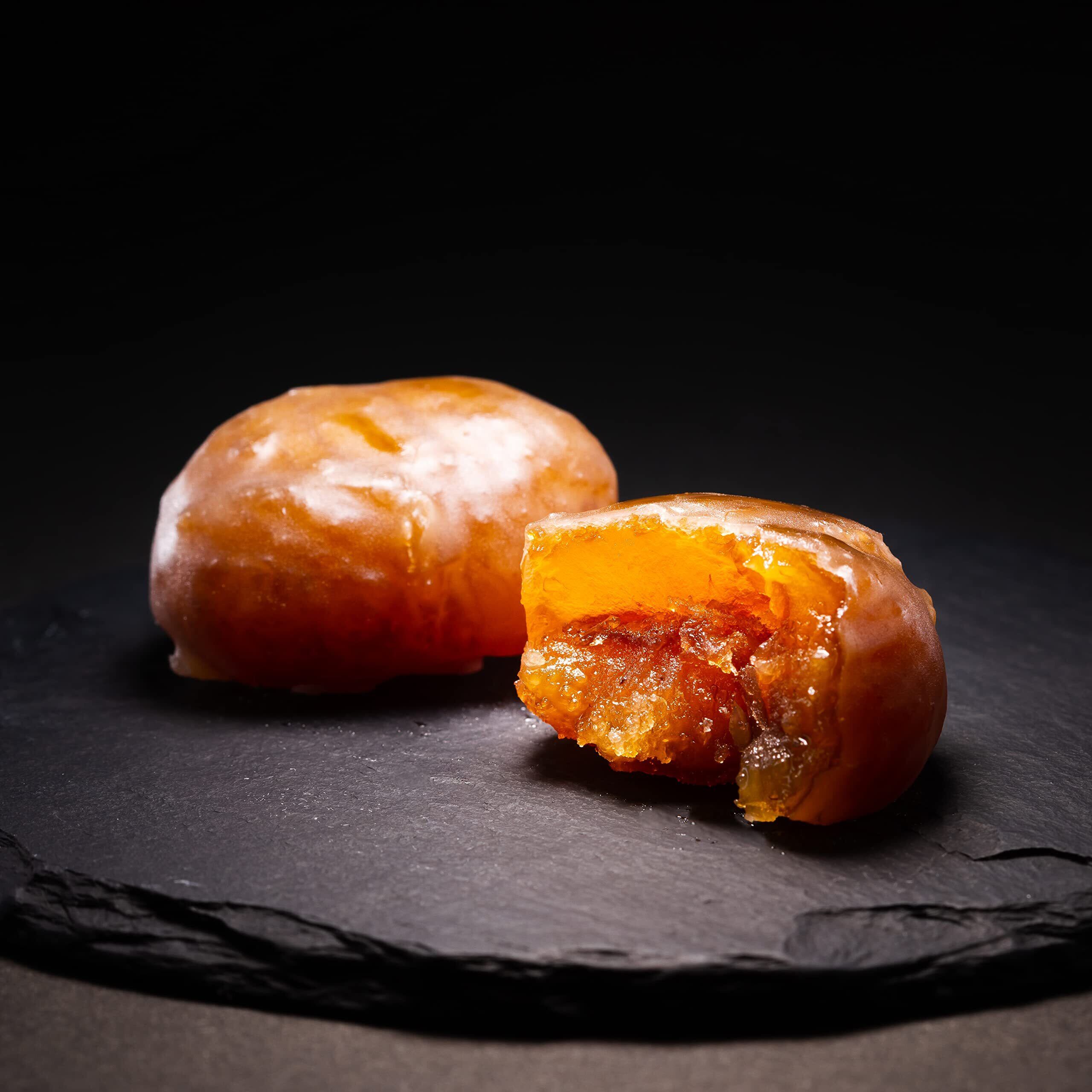 丁寧に渋皮を取り除いた粒よりの栗を、何度もシロップをくぐらせ表面の糖分が透明な輝きを放つまで乾燥させました。じっくり時間をかけて芯までしっとり柔らかく仕上げるお菓子の芸術品です。