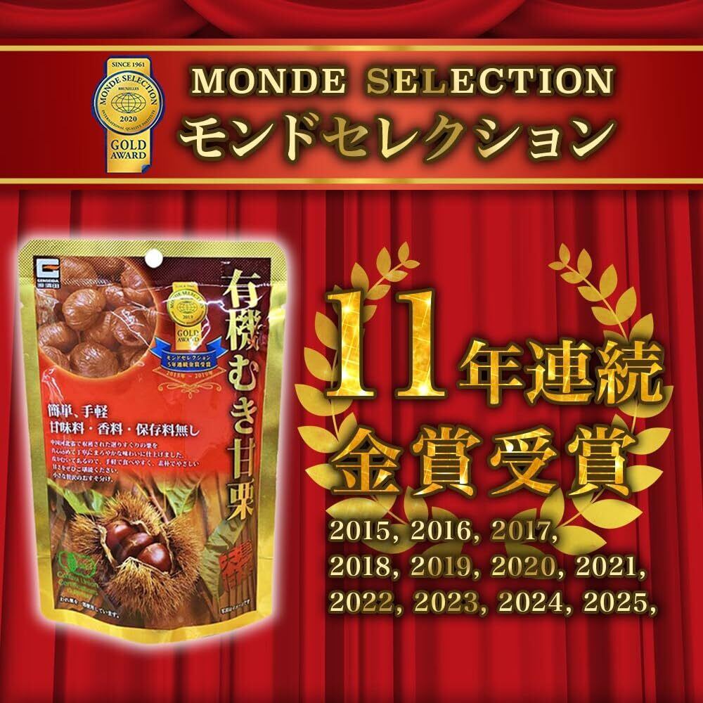 源清田商事 オーガニックむき甘栗 有機JAS認証 モンドセレクション金賞1連続受賞 甘味料、香料、保存料不使用 3,200g(80g x 40袋)