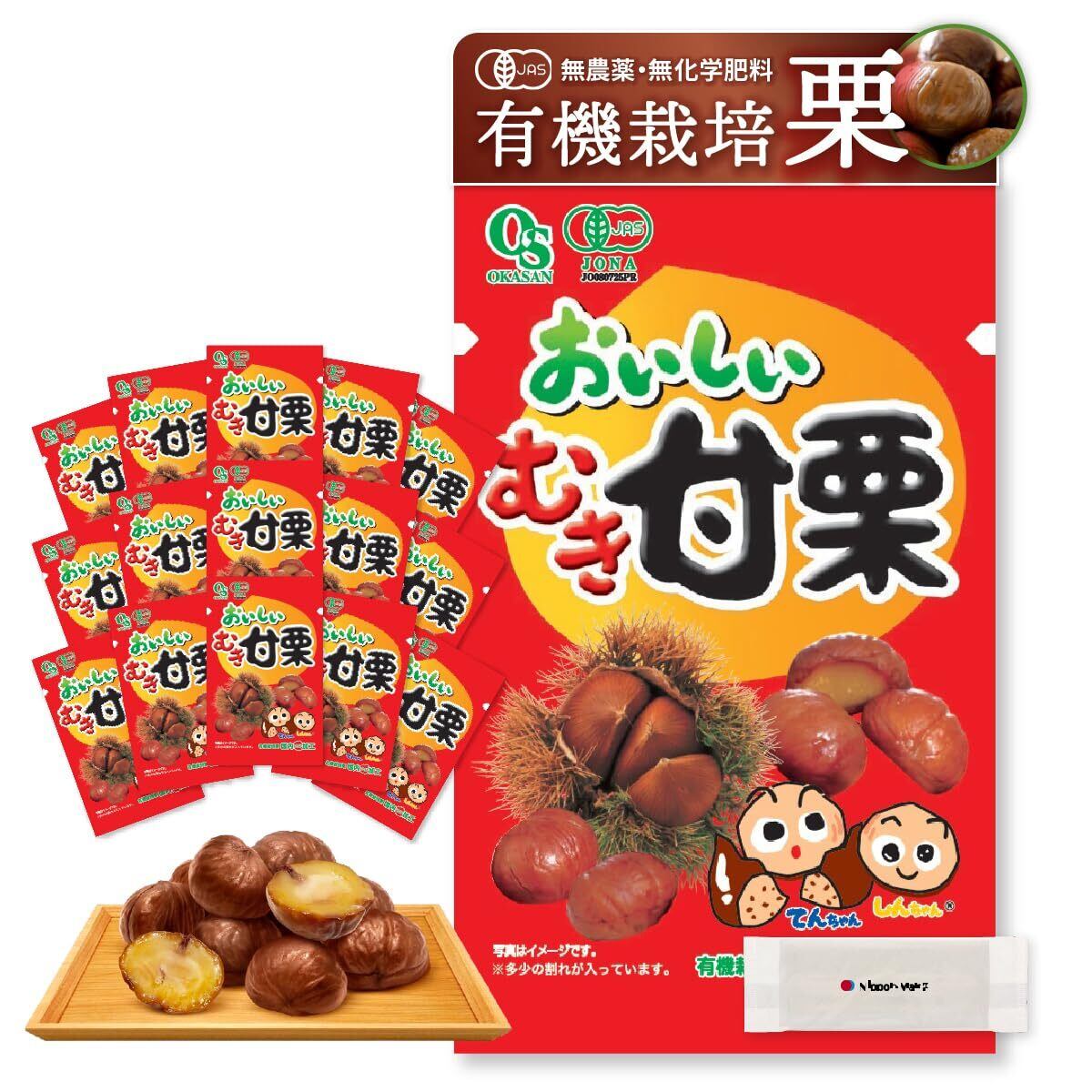 おいしいむき甘栗(平袋) 50g✕15袋 有機栽培栗・無農薬・無添加のむきぐり オーガニック天津甘栗 有機JAS認証 国内加工 個包装 岡三食品