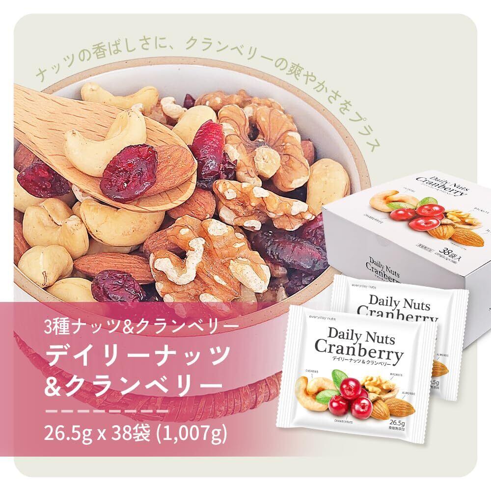 小分け デイリーナッツ&クランベリー 1.007kg (26.5g×38袋) 個包装 ミックスナッツ アーモンド くるみ カシューナッツ ドライクランベリー Daily nuts Cranberry 産地直輸入 箱入り 小分け 小袋 個包装 食べきり 食塩不使用 添加物不使用 植物油不使用