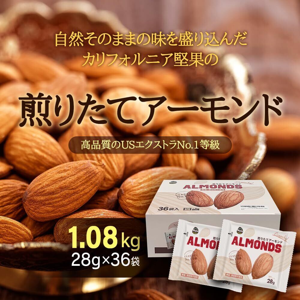 素焼きアーモンド 1.008kg (28g×36袋) USエクストラNo.1等級 カリフォルニア産 産地直輸入 素焼き 煎りたて 食塩不使用 添加物不使用 植物油不使用 おやつ おつまみ 防災食品 常備食 非常食