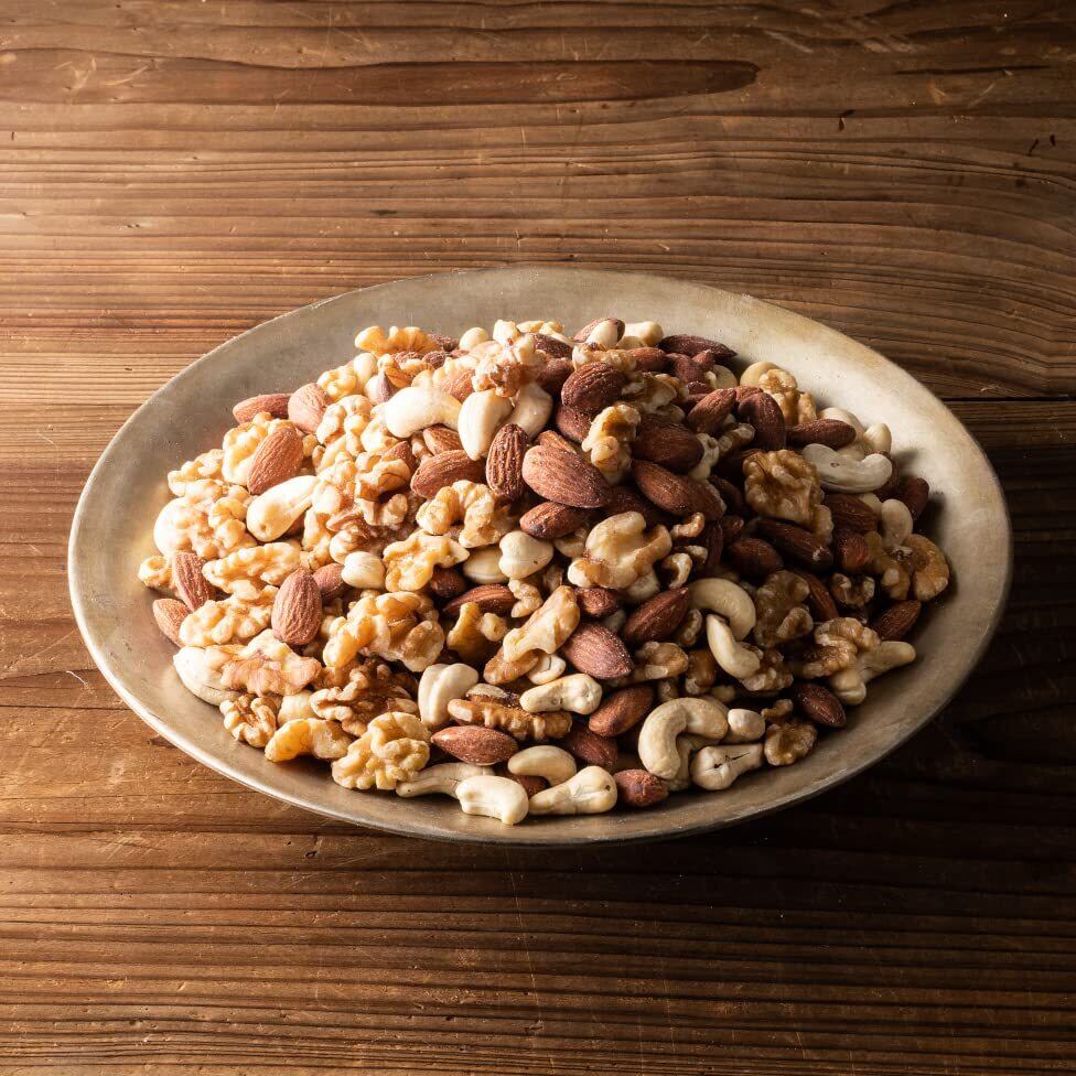 【大島ナッツのこだわり】 無添加・無塩の素焼きミックスナッツ。油を一切使用せず、じっくりとローストすることでナッツ本来の香ばしさを引き出しました。