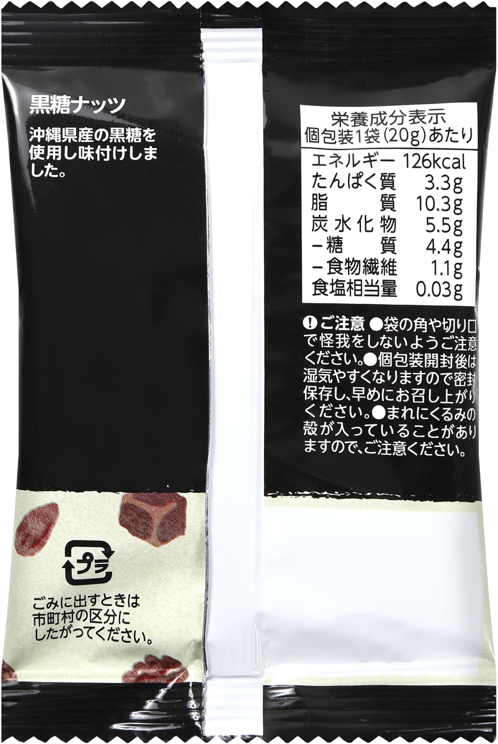 原材料:クルミ(アメリカ)、アーモンド、黒糖、黒蜜、食塩、(一部にくるみ・アーモンドを含む)